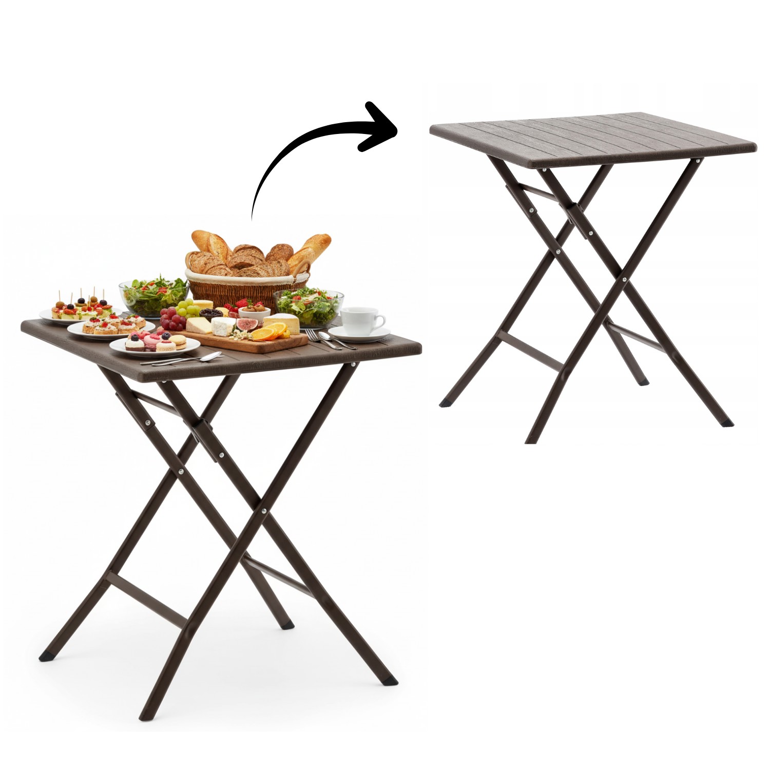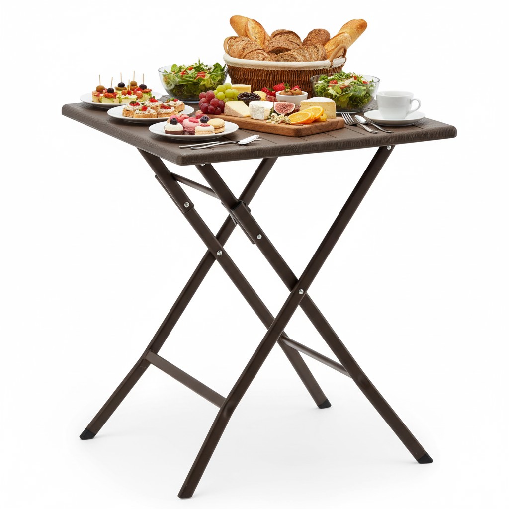 Зручний і стильний складаний стіл, який підійде для будь-якої ситуації на відкритому повітрі! Завдяки натуральному коричневому кольору, що імітує дерево, він ідеально вписується в садовий простір, на кемпінгу або під час сімейних пікніків 🌳🍽️
