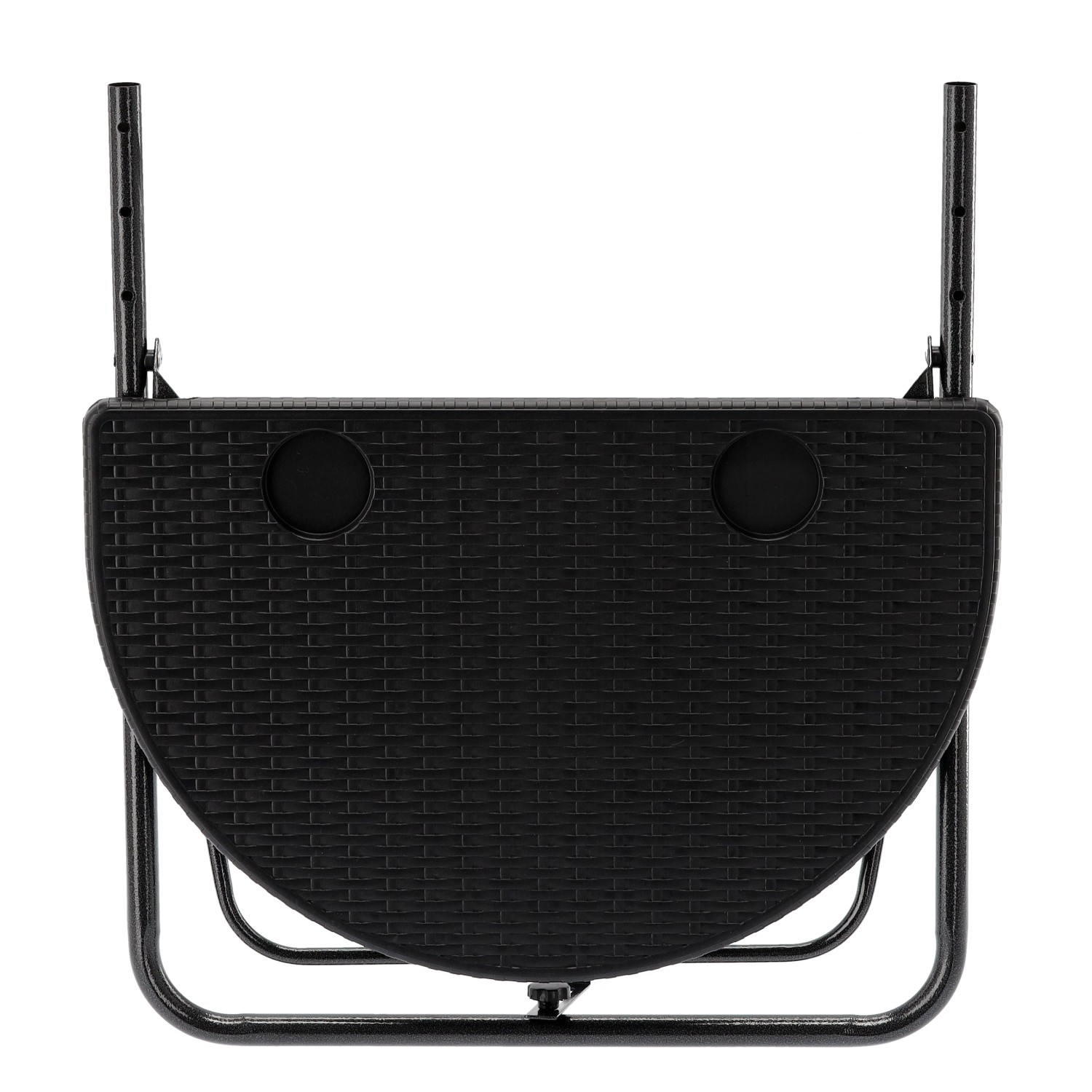 Стіл маєтовщину стільниці 1,7 см, що забезпечує міцність і стабільність під час використання. Виготовлений з міцного матеріалу, чорний колір, що імітує ротанг, надає йому елегантний вигляд, який ідеально поєднується з оточенням.