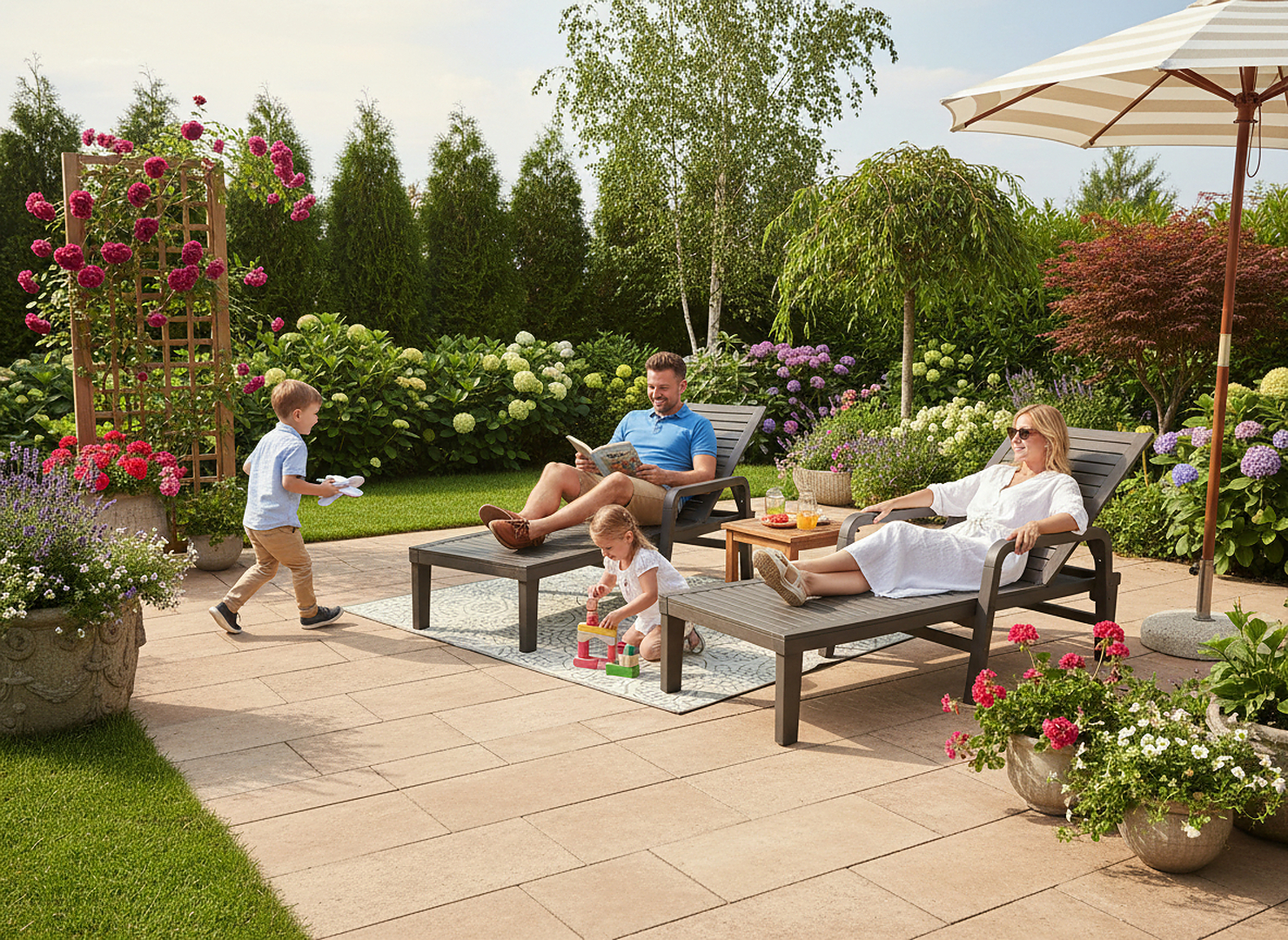 Шукаєте ідеальне місце для відпочинку в саду або на терасі? Цей елегантний садовий шезлонг темно-коричневого кольору забезпечить вам комфорт і релакс у сонячні дні. 🌿
