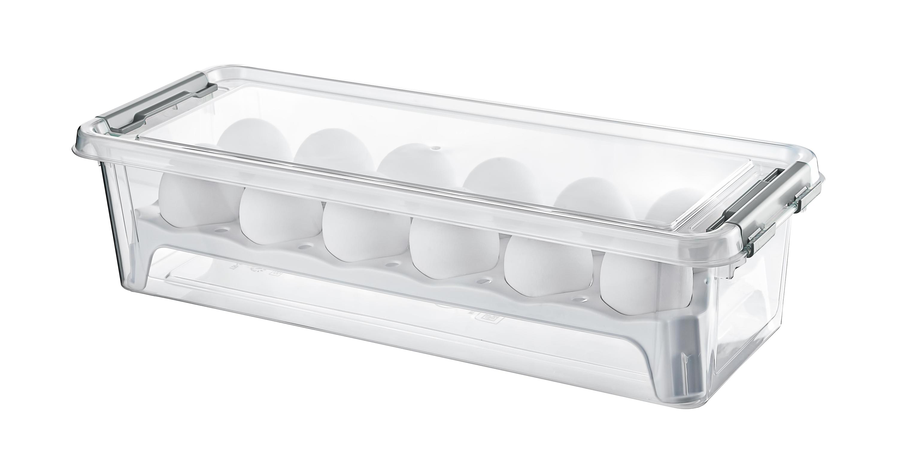 Прямокутний пластиковий контейнер на 12 яєць. Виготовлений з високоякісного пластику. Матеріал, з якого виготовлені контейнери, не містить шкідливого BPA (бісфенолу).Зручне відкривання контейнера робить його використання та перенесення вмісту надзвичайно простим.Придатний для зберігання в холодильнику та морозильній камері. Придатний для миття в посудомийній машині.Контейнер полегшить зберігання яєць у холодильнику, але також підійде для транспортування яєць.