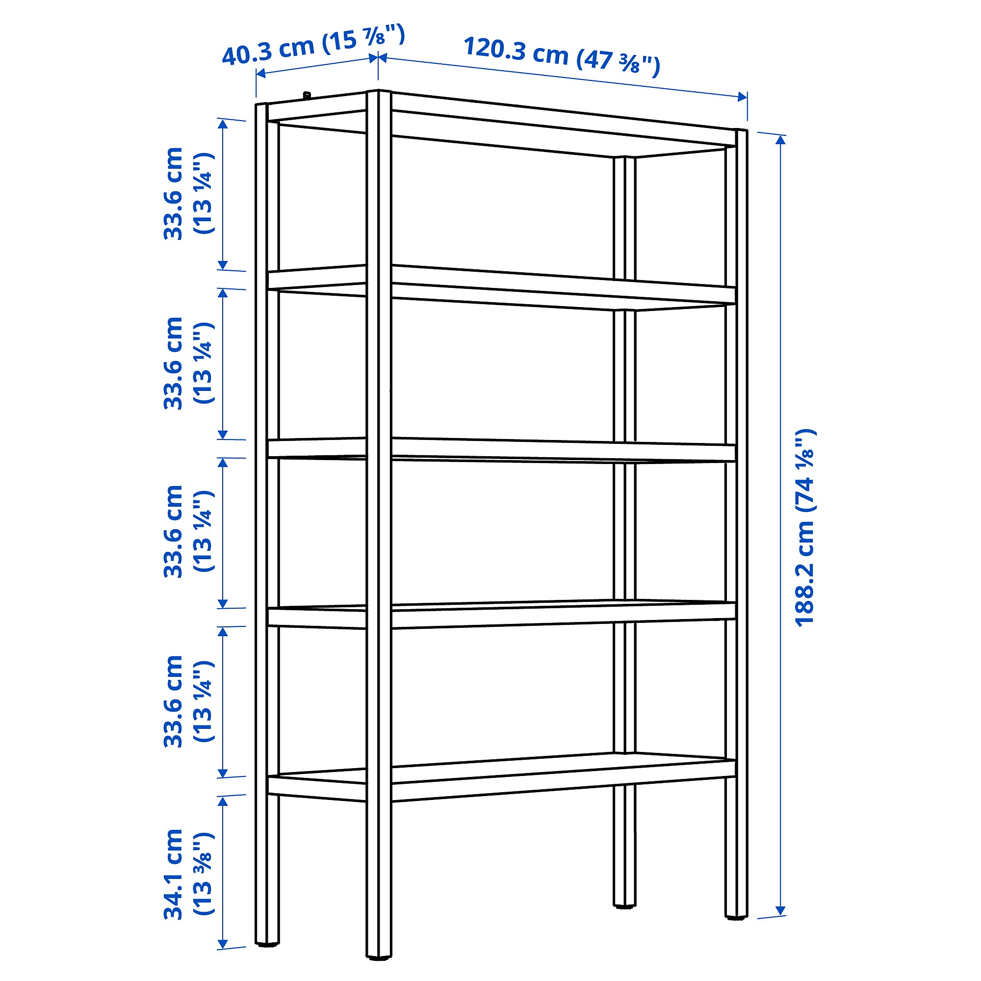 Глибина: 40.3 смВисота: 188.2 смМакс. навантаження верхній панель: 20.00 кгНавантаження на полицю: 15.00 кгШирина: 120.3 смЦей виріб може потребувати складання.