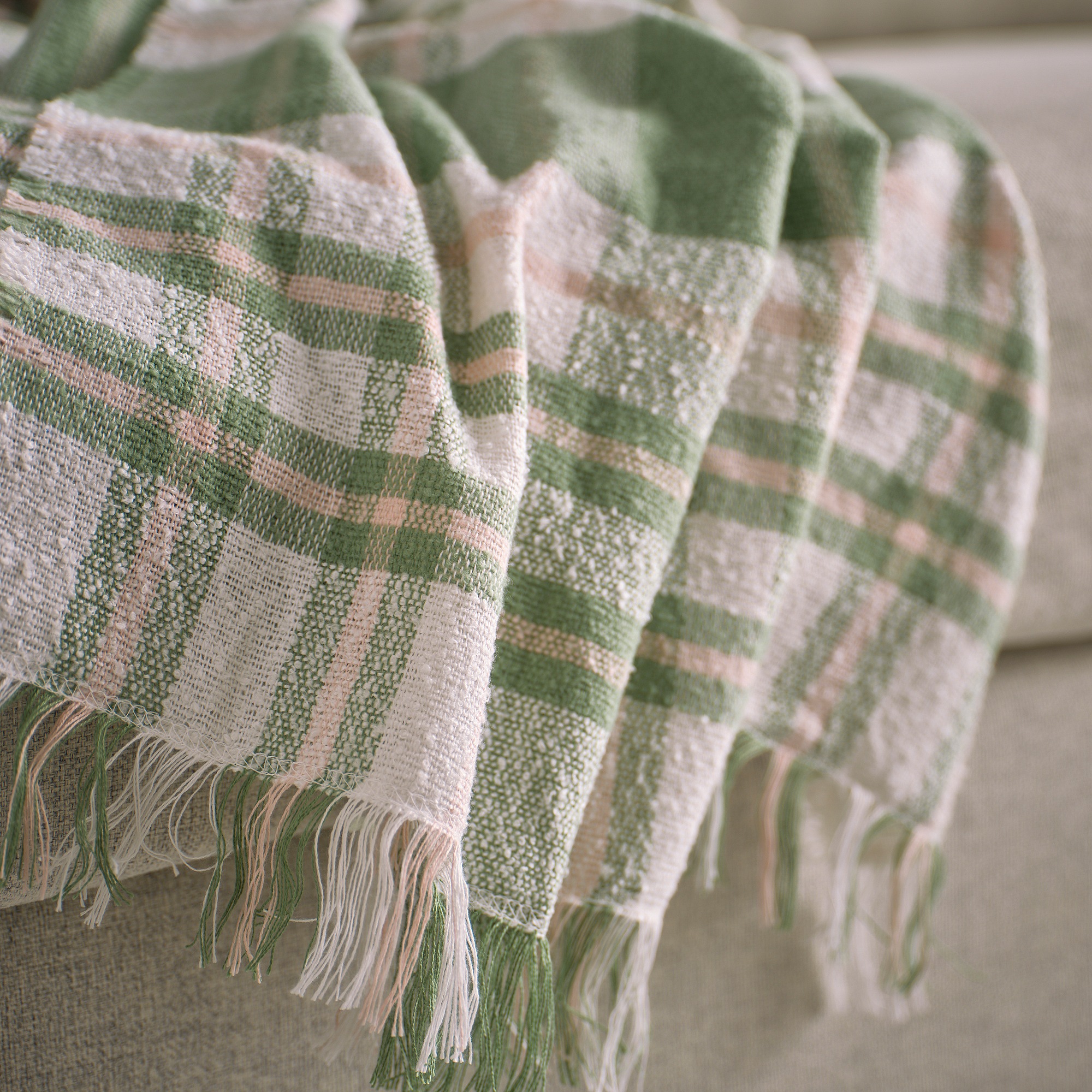 Легкий, надзвичайно м'який плед з бахромою, в який приємно загорнутися. Класичний картатий візерунок у зеленому та кремовому кольорах пасує до всього і всюди. Виготовлений на 100% з переробленого поліестеру.
