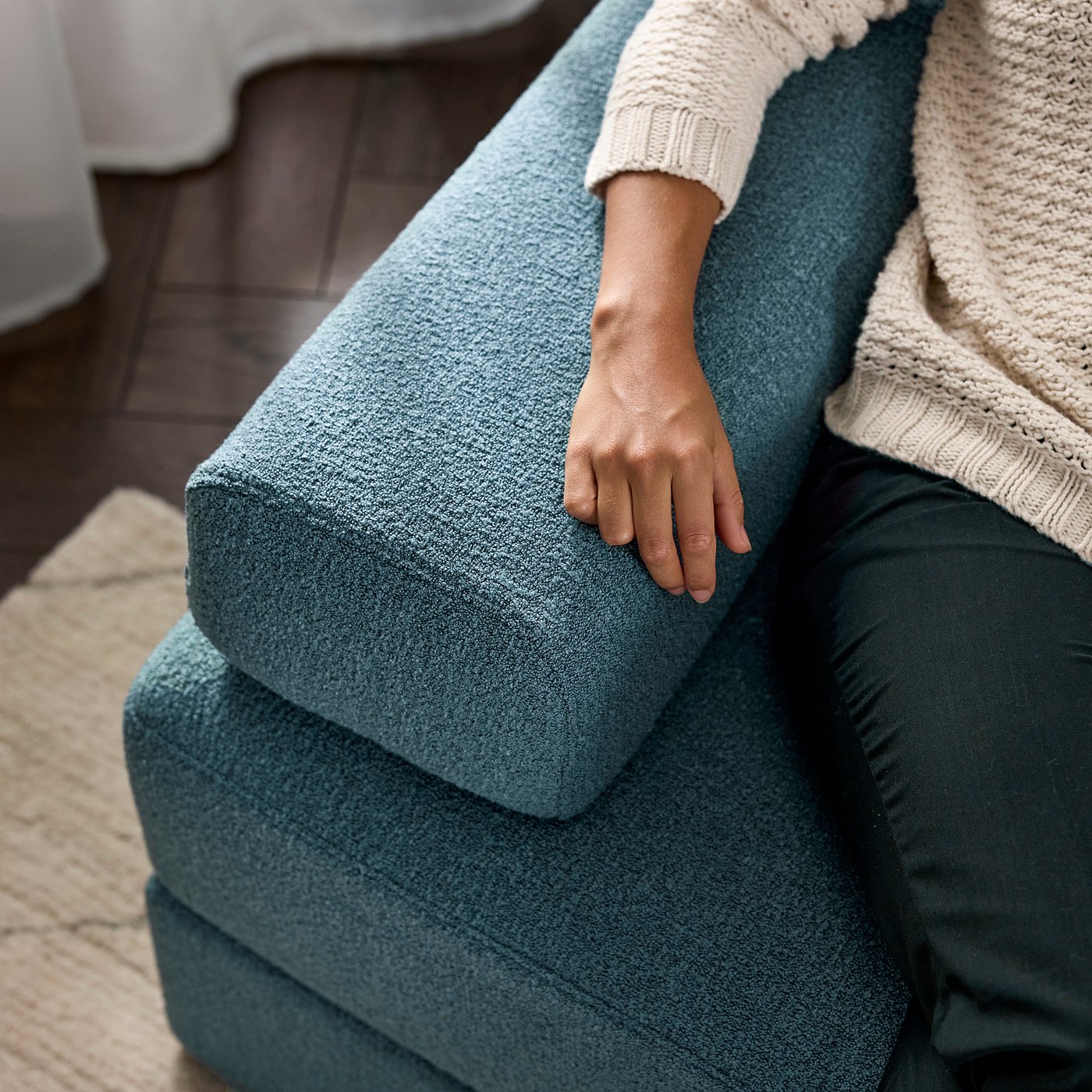 Оббивка виготовлена з тканини bouclé під назвою Axvall – м'якого, стильного матеріалу з характером.