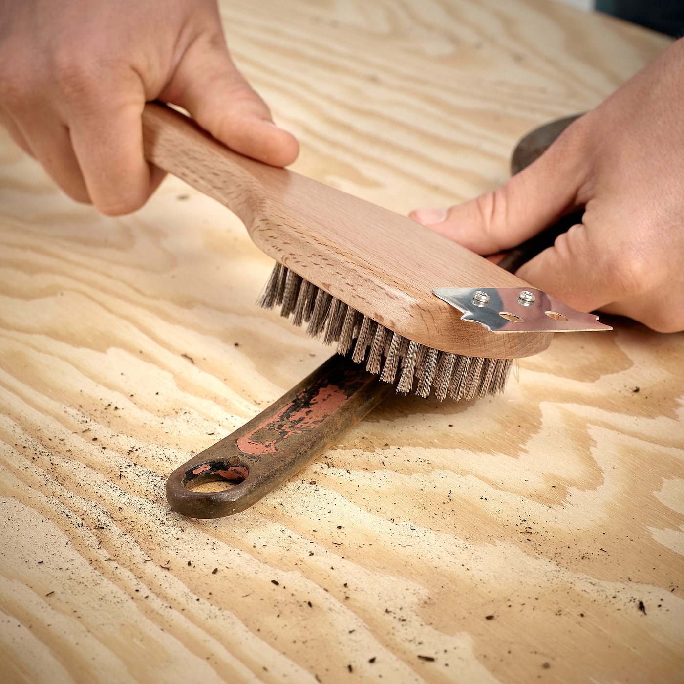 Сталева щітка, якою можна очистити решітку або інші сильно забруднені поверхні.