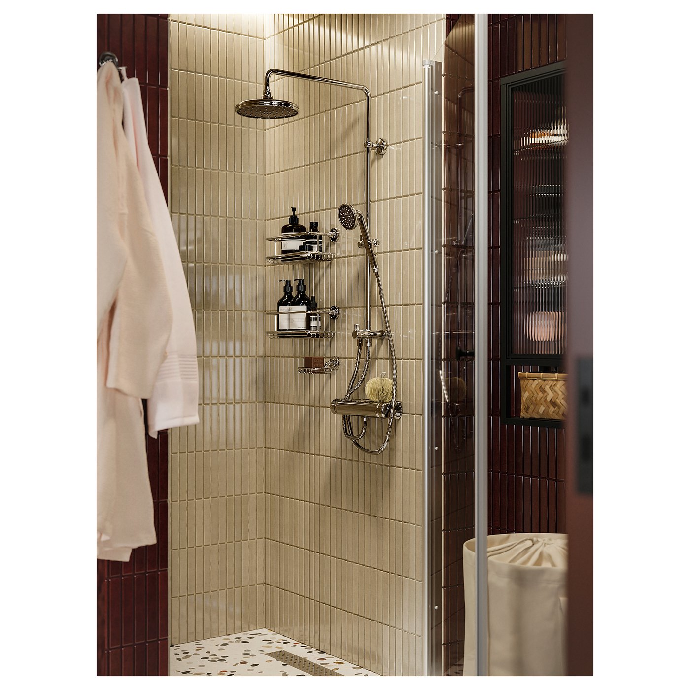 Аксесуари для ванної кімнати BROFJÄRDEN з блискучими хромованими деталями нагадують елегантний, позачасовий дизайн минулих років. Завдяки цій полиці для душу ваше мило та шампуні завжди будуть упорядковані та під рукою.