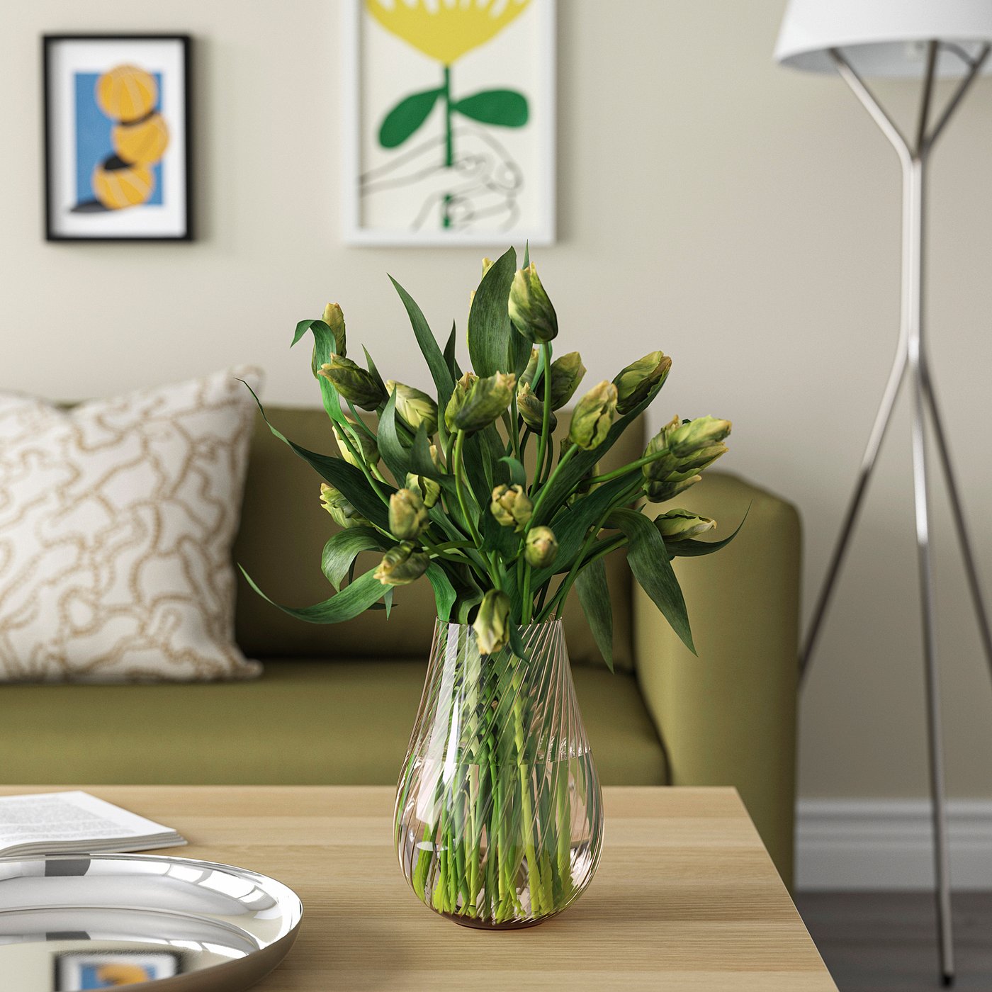 Елегантна ваза, яка підкорить серця багатьох людей. Лінії, що кружляють всередині, створюють прекрасну динаміку та світлові відблиски. Форма, що нагадує краплю, та теплий, світло-коричневий відтінок підкреслюють її стильний характер.
