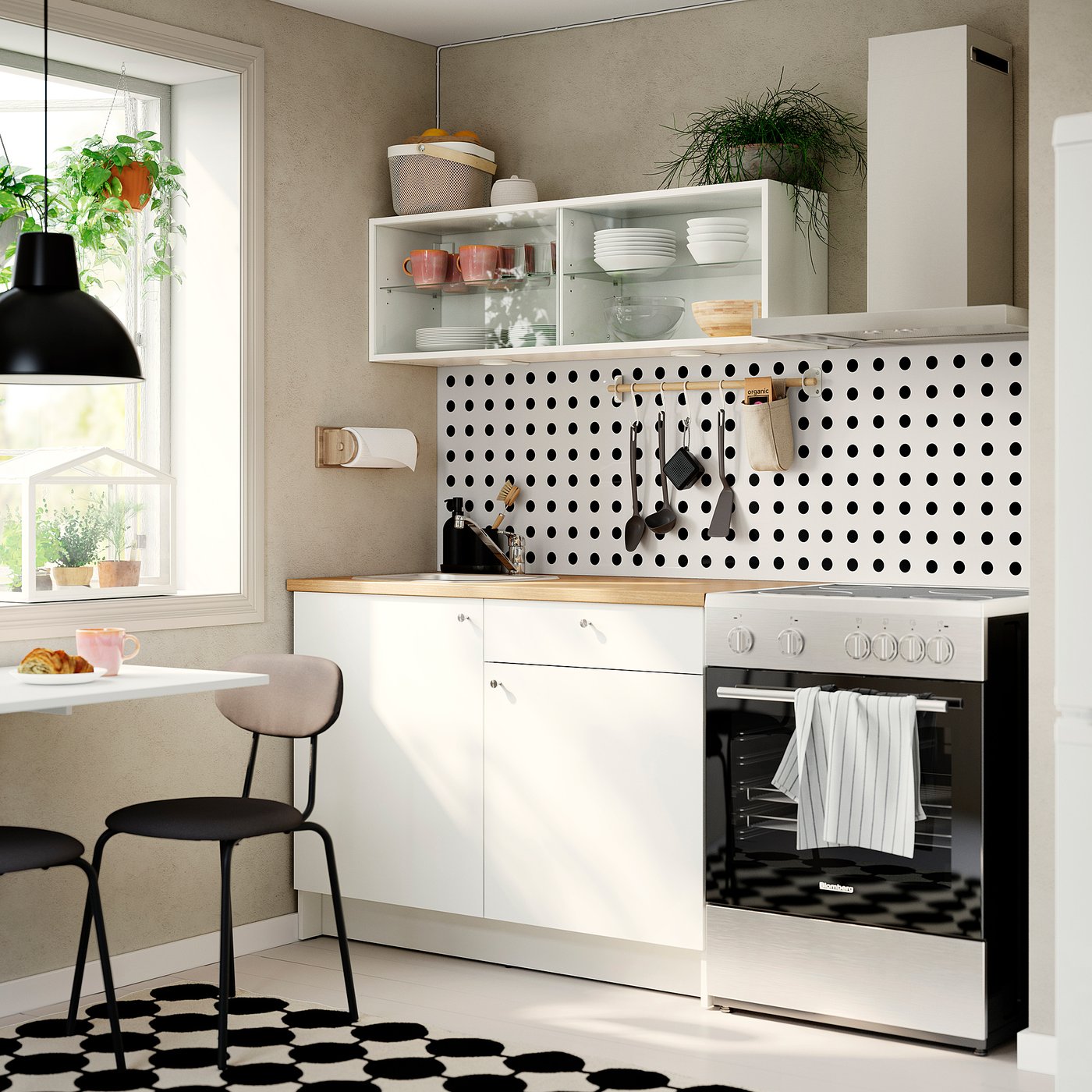 Білі фасади в поєднанні з стільницею з імітації дуба надають кухні свіжий, позачасовий вигляд, якому важко встояти.