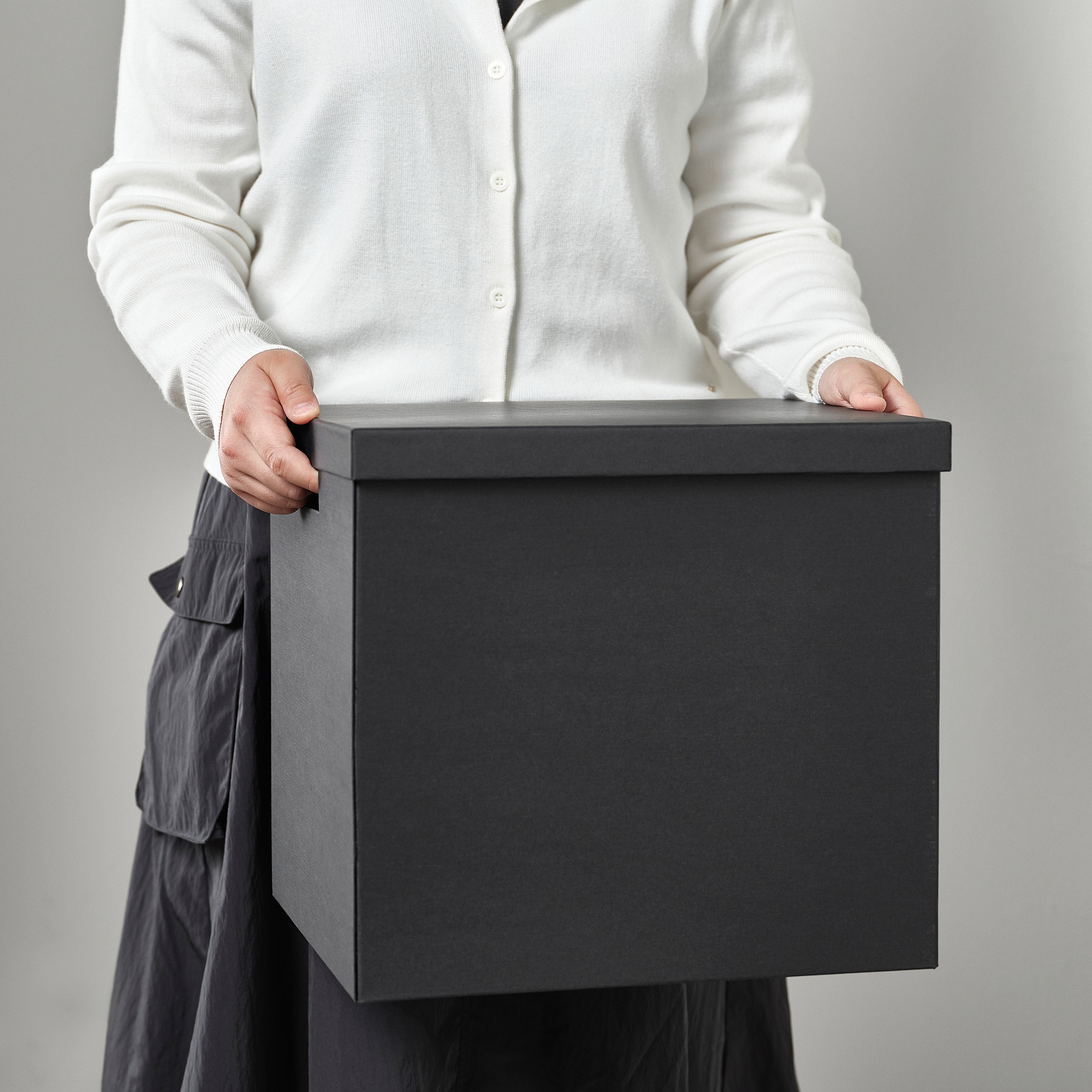 Цей картонний контейнер — ідеальне місце для зберігання аксесуарів для хобі та мультимедійних гаджетів. Він настільки міцний, що підходить для щоденного використання. Пасує до стелажа KALLAX — біля робочого місця або у вітальні.