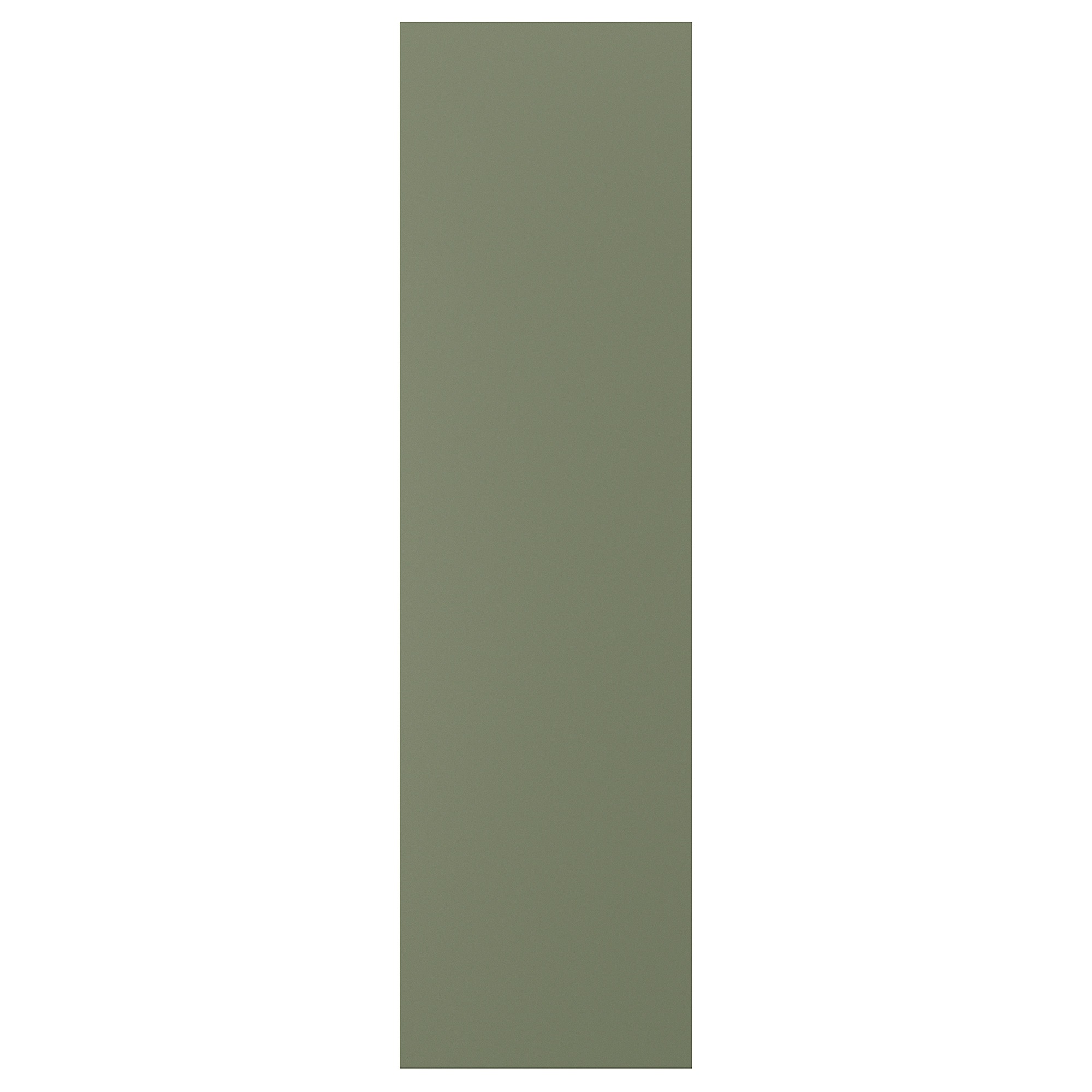 Маскувальні панелі в тому ж матовому сіро-зеленому відтінку, що і фасади, уніфікують стиль кухні та підкреслюють її дизайн.