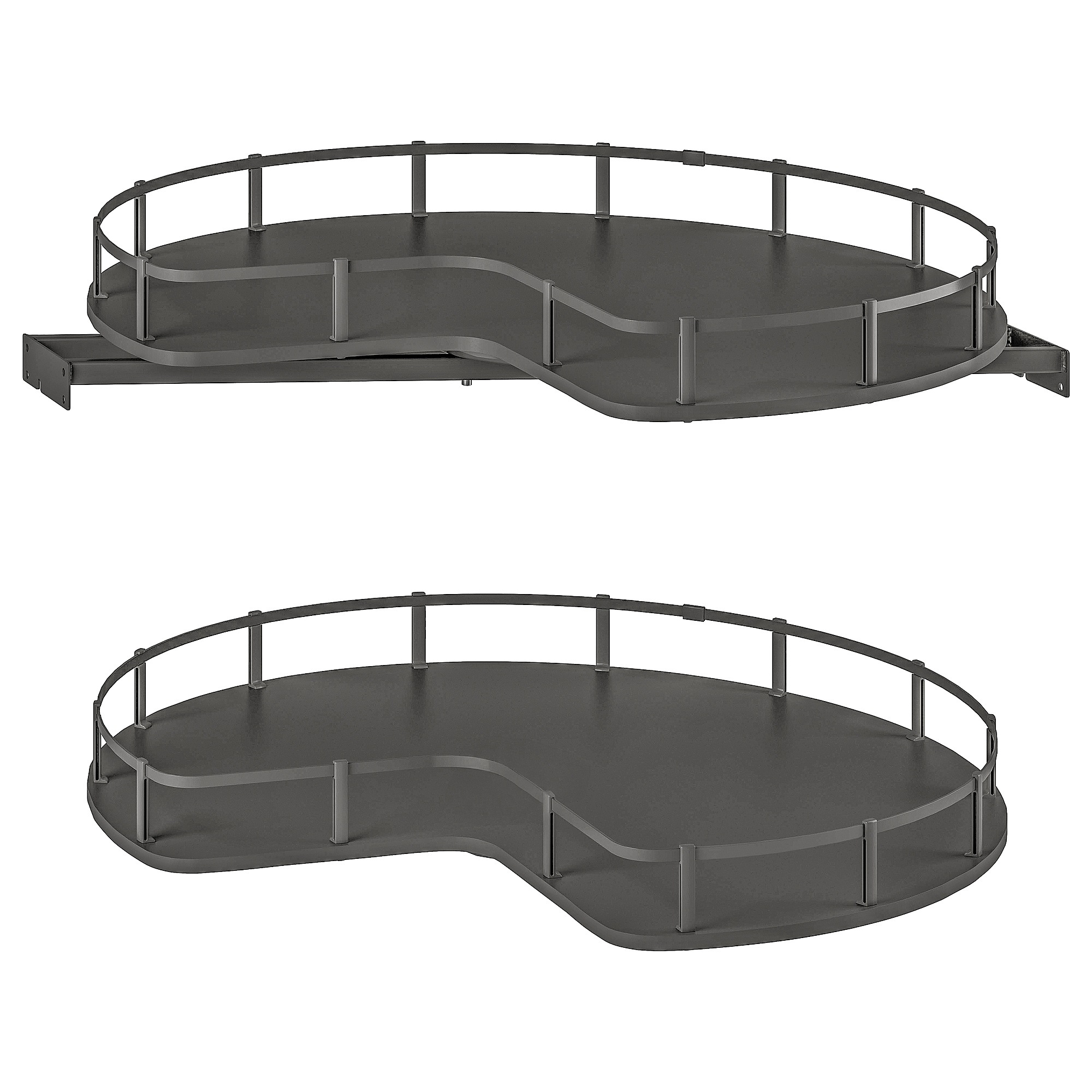 Карусель з двома обертовими лотками не має центральної стійки, що забезпечує максимальний кутовий простір і водночас полегшує доступ до речей, що зберігаються.