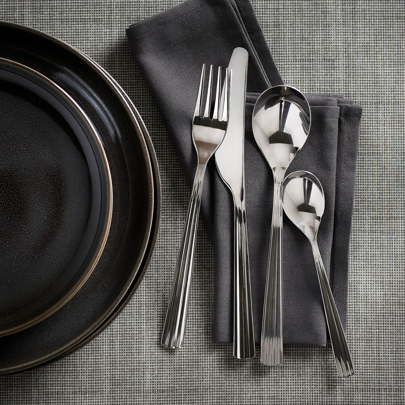 Столові прибори SJUGÄLSHAJ з нержавіючої сталі вражають елегантним дизайном і хвилястим орнаментом. Вони підійдуть як для щоденних трапез, так і для урочистих прийомів.