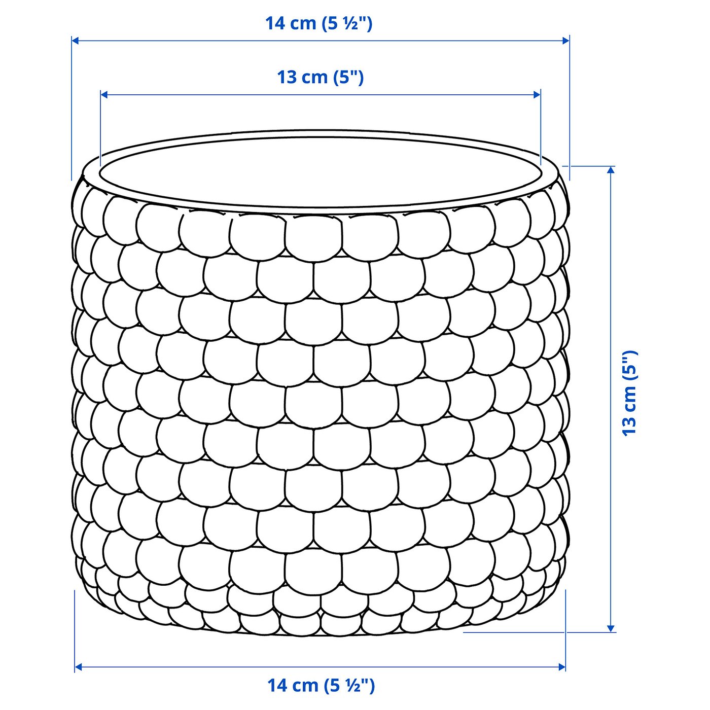 Висота: 13 смВнутрішній діаметр: 13 смМакс. діаметр горщика: 12 смЗовнішній діаметр: 14 см