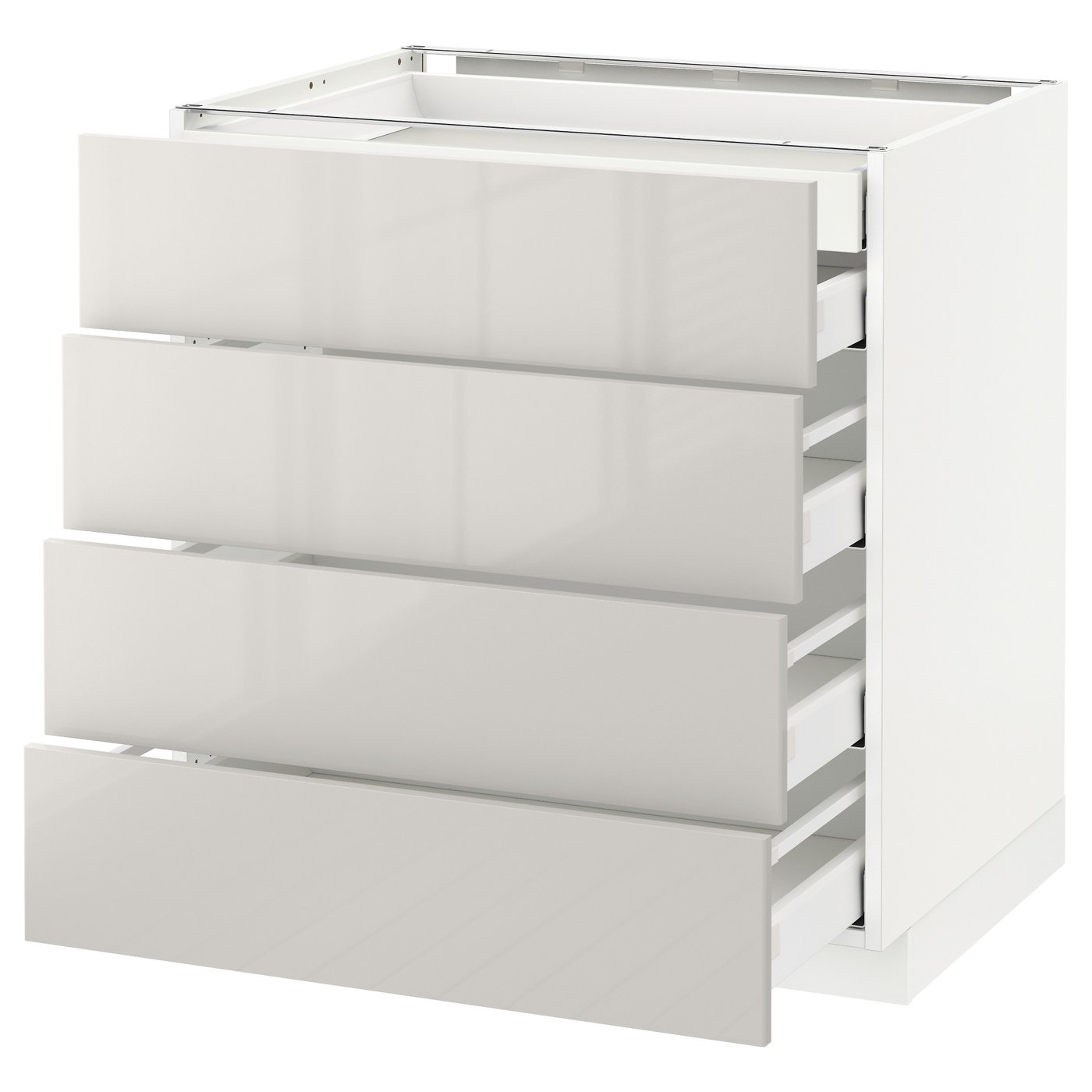Система METOD надає необмежені можливості для проектування кухні вашої мрії. У поєднанні з сірими фасадами RINGHULT з високим глянцем ваша кухня набуває сучасного та просторого вигляду і є легкою в догляді.