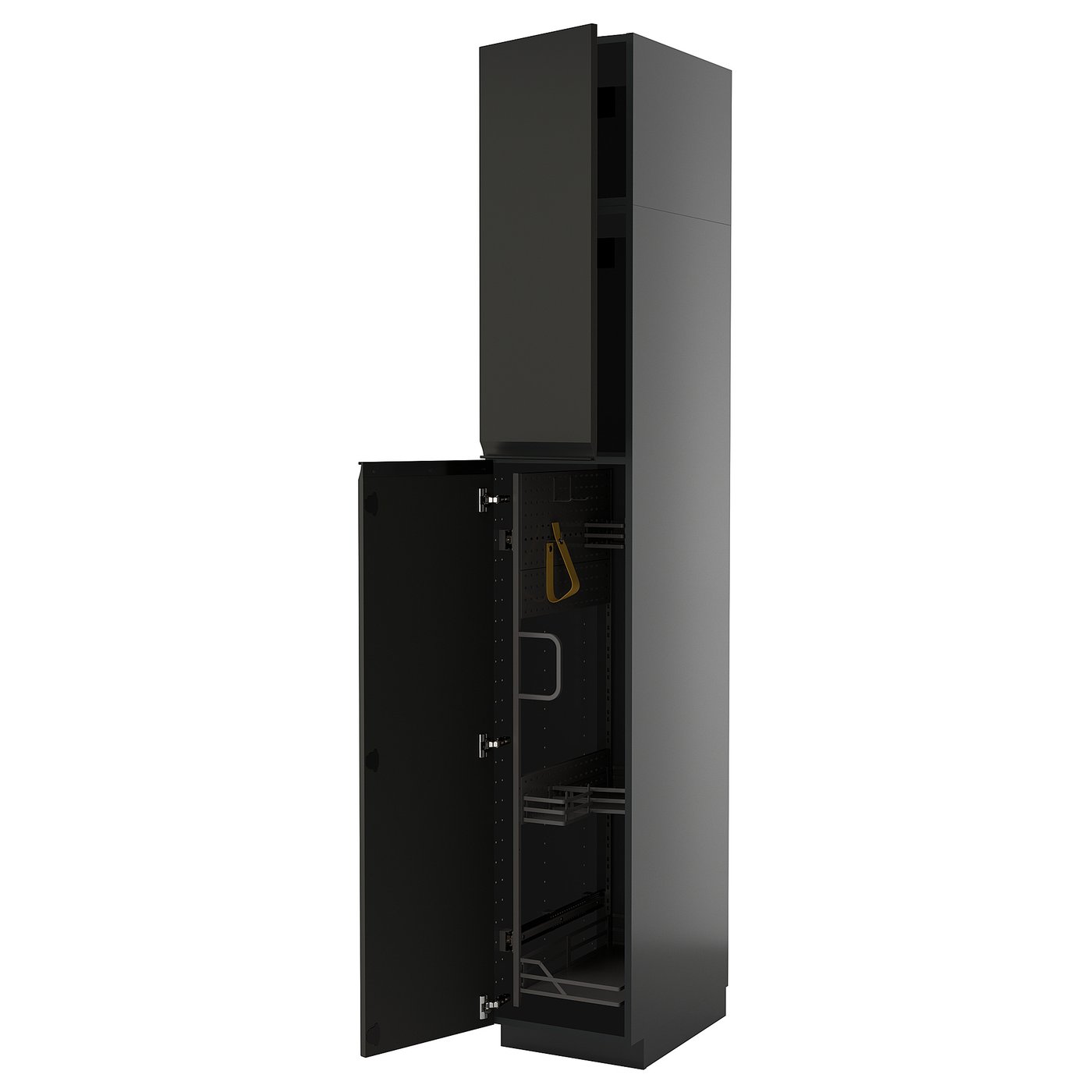 Система METOD надає необмежені можливості для проектування кухні вашої мрії. У поєднанні з фасадами UPPLÖV у матовому чорному кольорі з інтегрованою ручкою та скошеними краями ви отримаєте сучасний графічний вигляд.