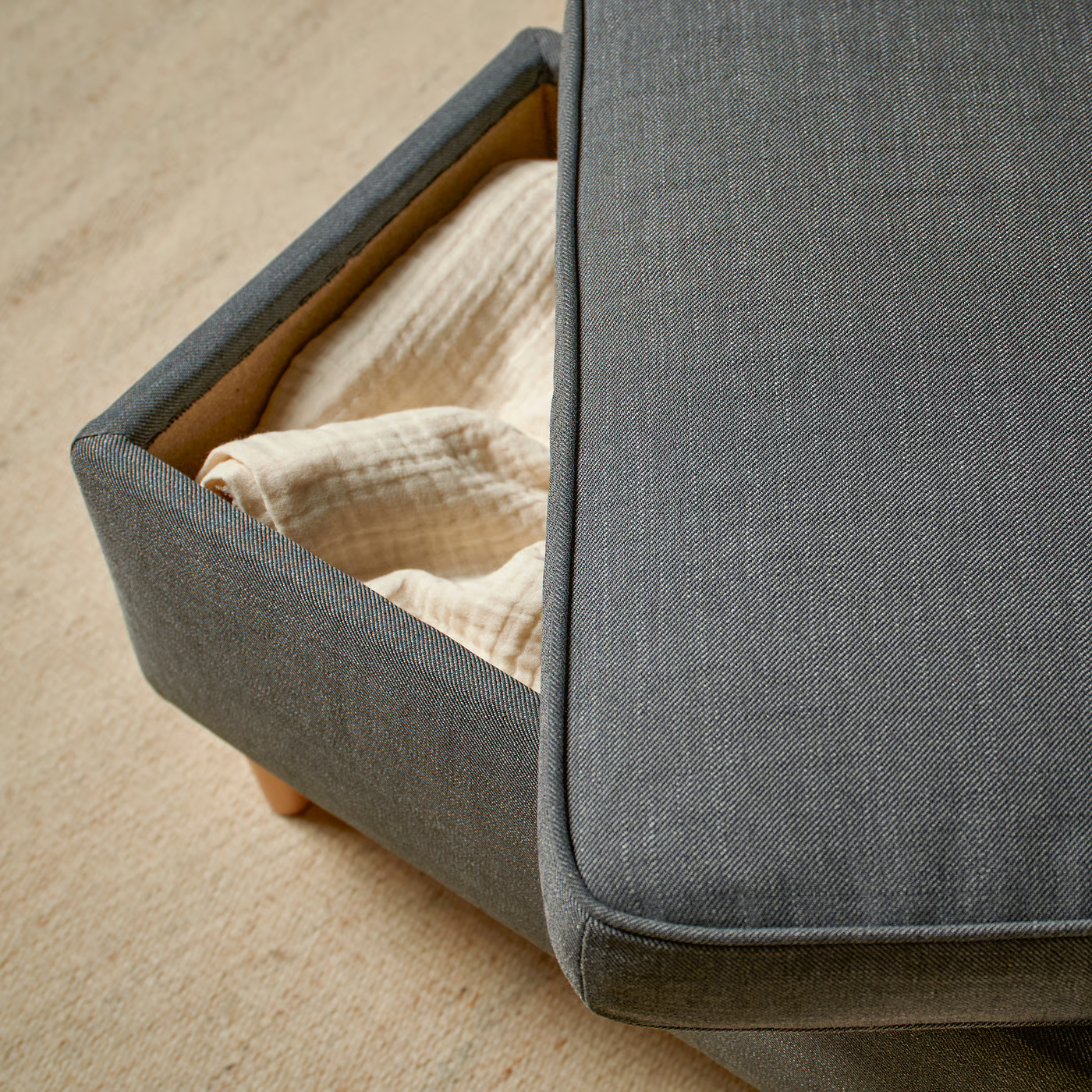 Це покриття виготовлено з Tibbleby - м'якої, повністю фарбованої поліефірної тканини з легким блиском і стриманим візерунком у вигляді ялинки.