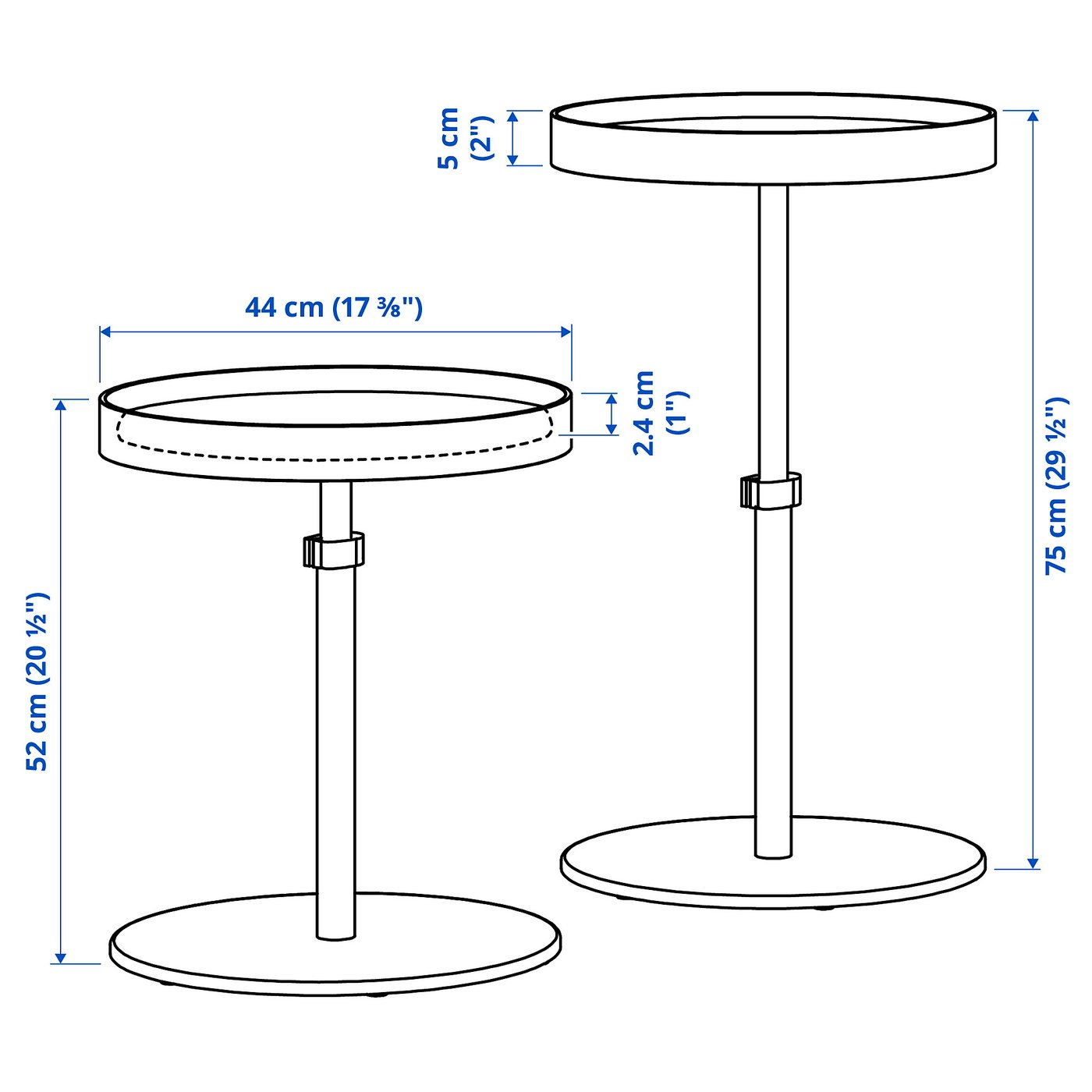 Діаметр: 44 смМаксимальне навантаження: 10 кгМаксимальна висота: 75 смМінімальна висота: 52 смЦей виріб може потребувати складання.