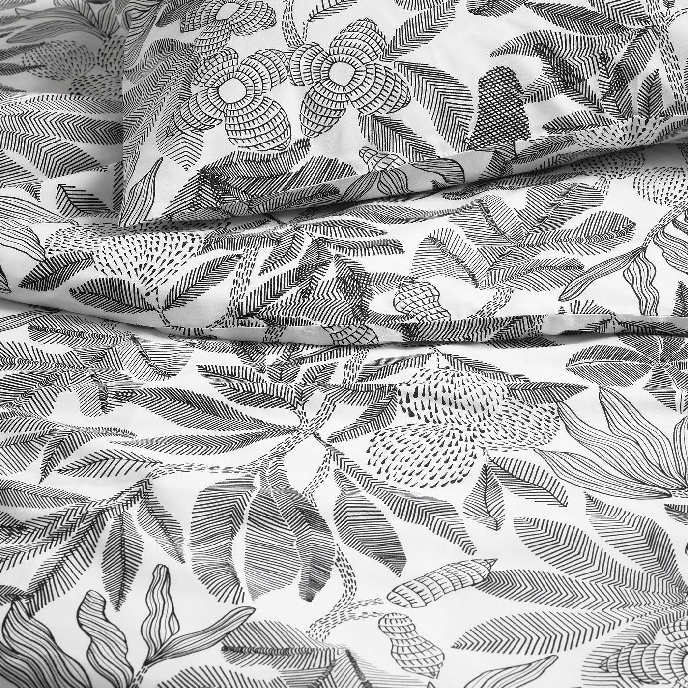 Комплект постільної білизни BROKDRACENA представляє новаторський підхід до традиційних рослинних візерунків у вигляді графічних квітів, натхненних вишивкою. Гладка на дотик суміш поліестеру та віскози має ніжний блиск і не мнеться.