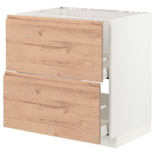 Система METOD пропонує необмежені можливості для створення кухні вашої мрії. У поєднанні з фасадами VOXTORP з імітацією дуба, з інтегрованими ручками, ви отримаєте природний, теплий вигляд.