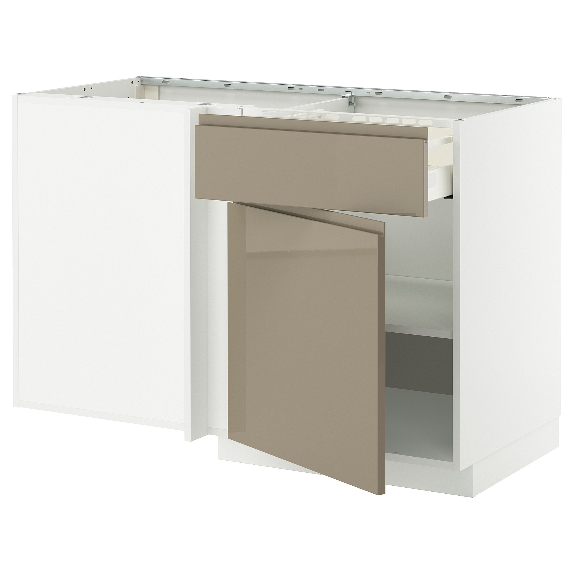 Використовуйте білий заповнювач, що входить до комплекту, якщо ви ставите комод під правильним кутом до кутової шафи. Заповнювач можна також прикрити шматком оздоблювальної панелі, щоб він повністю збігався з кухонними дверцятами.