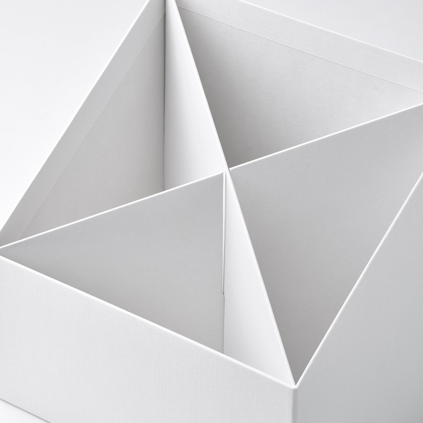 Організатор на стіл з 4 відділеннями, в яких можна розкласти ручки, пензлі та ножиці, створивши упорядковане робоче місце. Потрібно більше місця для зберігання? Підходить до інших виробів серії FJÄDERHARV.