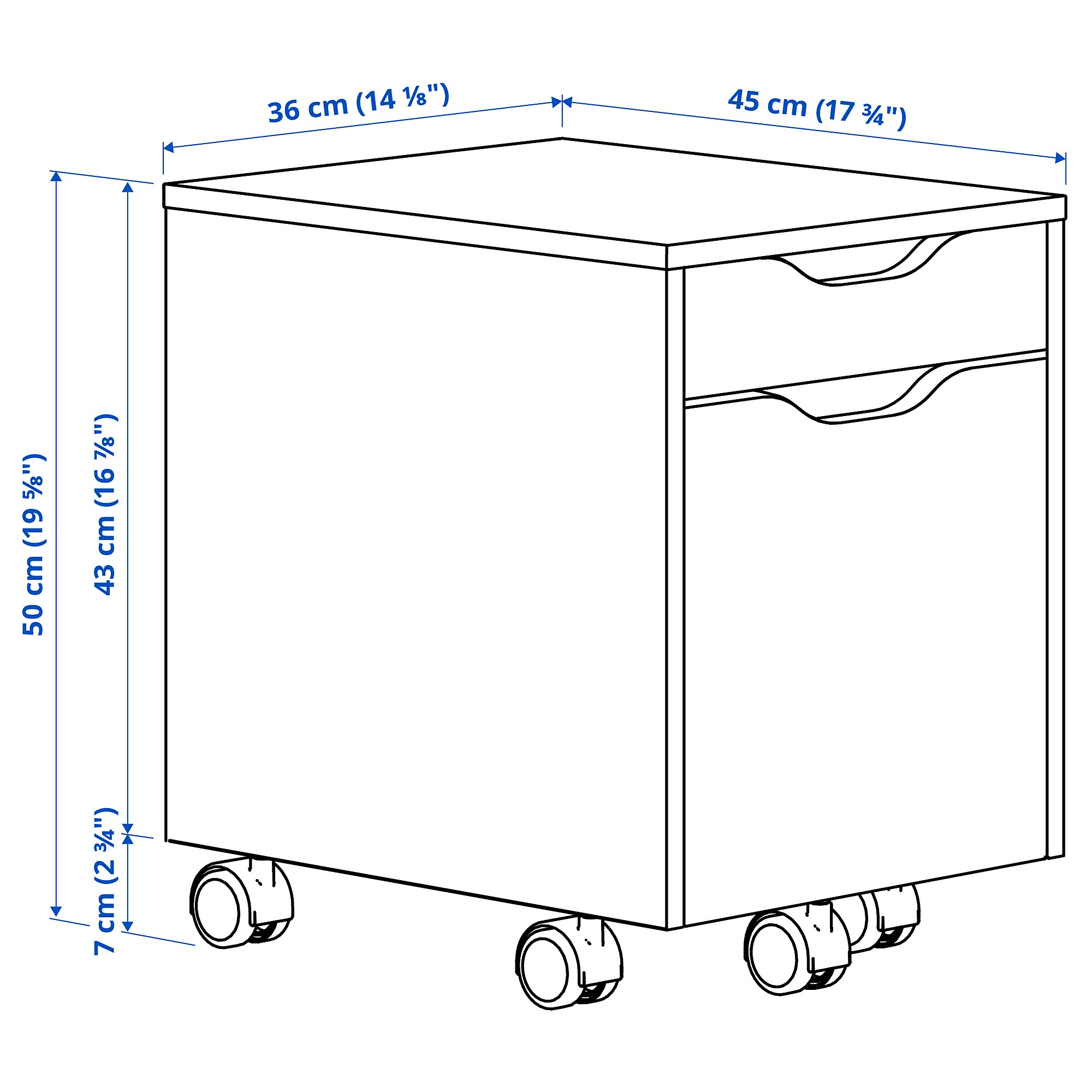 Ця містка комода, встановлена біля письмового столу або окремо, забезпечить багато додаткового місця для зберігання. Її простий дизайн легко сподобається і так само легко доповнити іншими продуктами серії ALEX або поєднати з абсолютно іншими меблями.