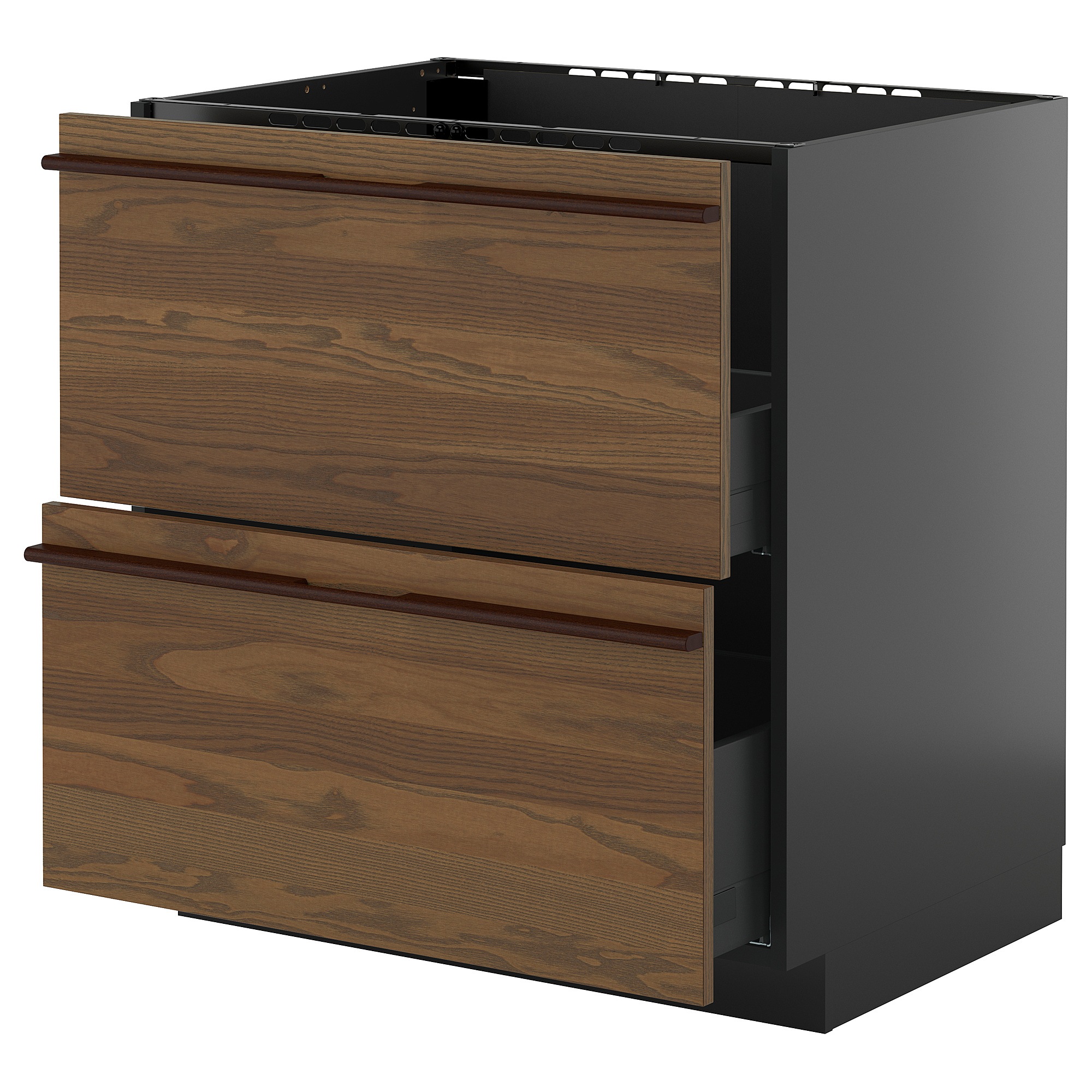 Система METOD надає необмежені можливості для проектування кухні вашої мрії. У поєднанні з фасадами STENSTA з мориленого темно-коричневого шпону та ручками з масиву дерева створює теплий, цікавий ефект.