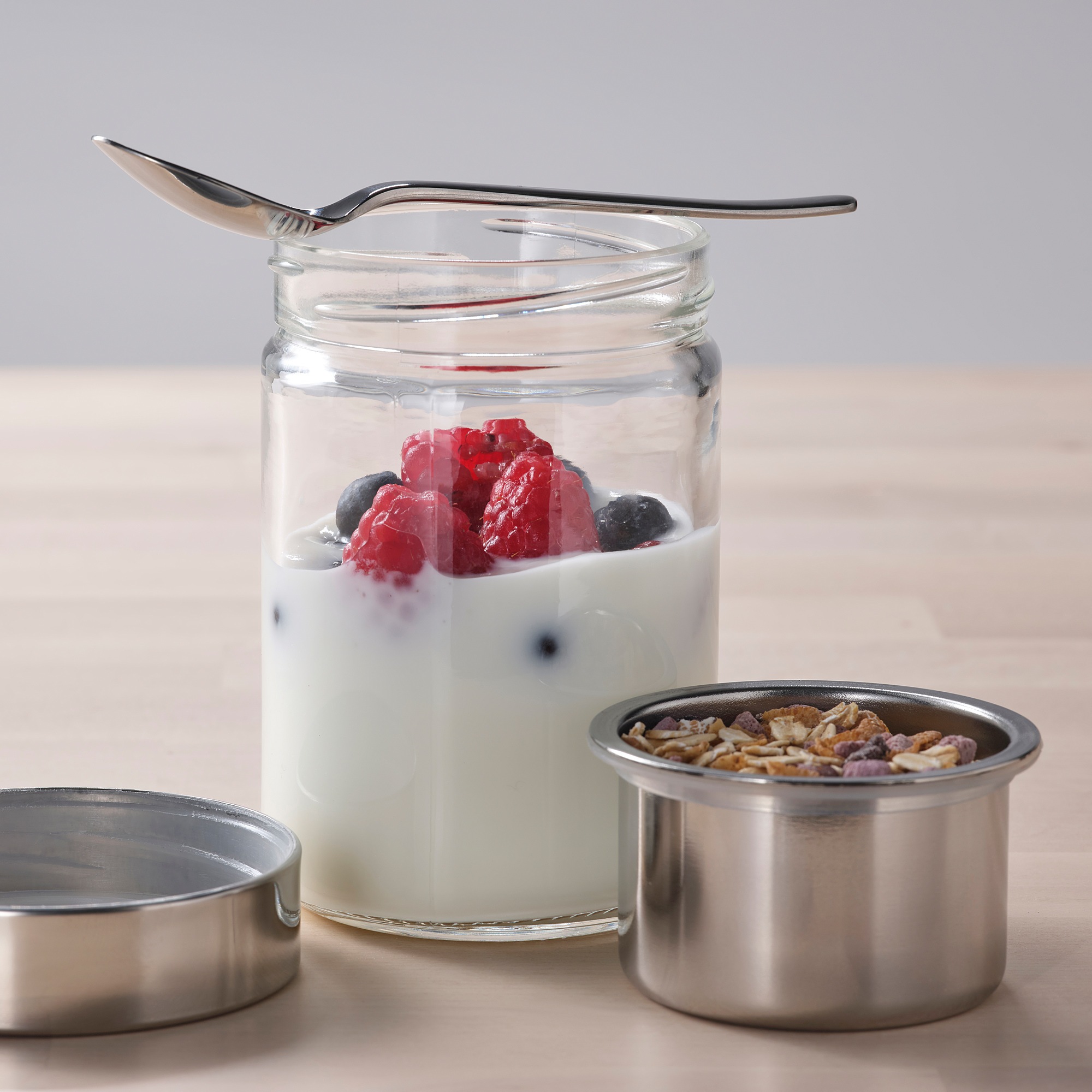 Візьміть сніданок з собою в цій герметичній баночці - на роботу, навчання або в ліжко. Ідеально підходить, якщо ви хочете залишити вівсянку або йогурт на ніч, адже в ній є вставка для сипучих інгредієнтів, таких як горіхи або мюслі.