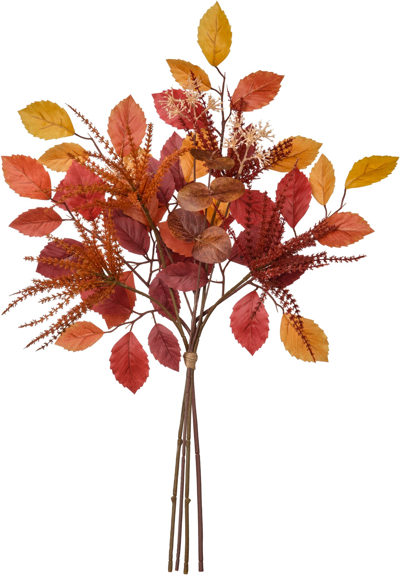 Інтенсивні кольори осені зібрані в штучному букеті. Квіти та листя в світло-темних відтінках виготовлені переважно з переробленого пластику. Вони вносять в дім приємне тепло і не потребують догляду.