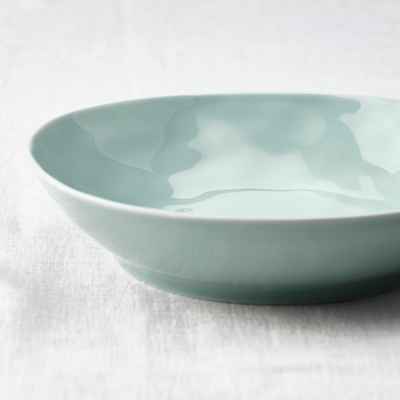 Виготовлені з кальцієвої порцеляни, міцного матеріалу, стійкого до подряпин, який витримує навантаження щоденного використання. Блискуча, нерівна поверхня надає посуду характер ручної роботи.