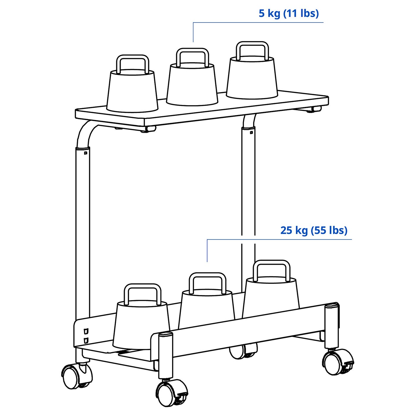 Максимальне навантаження на нижню полицю: 25 кг.