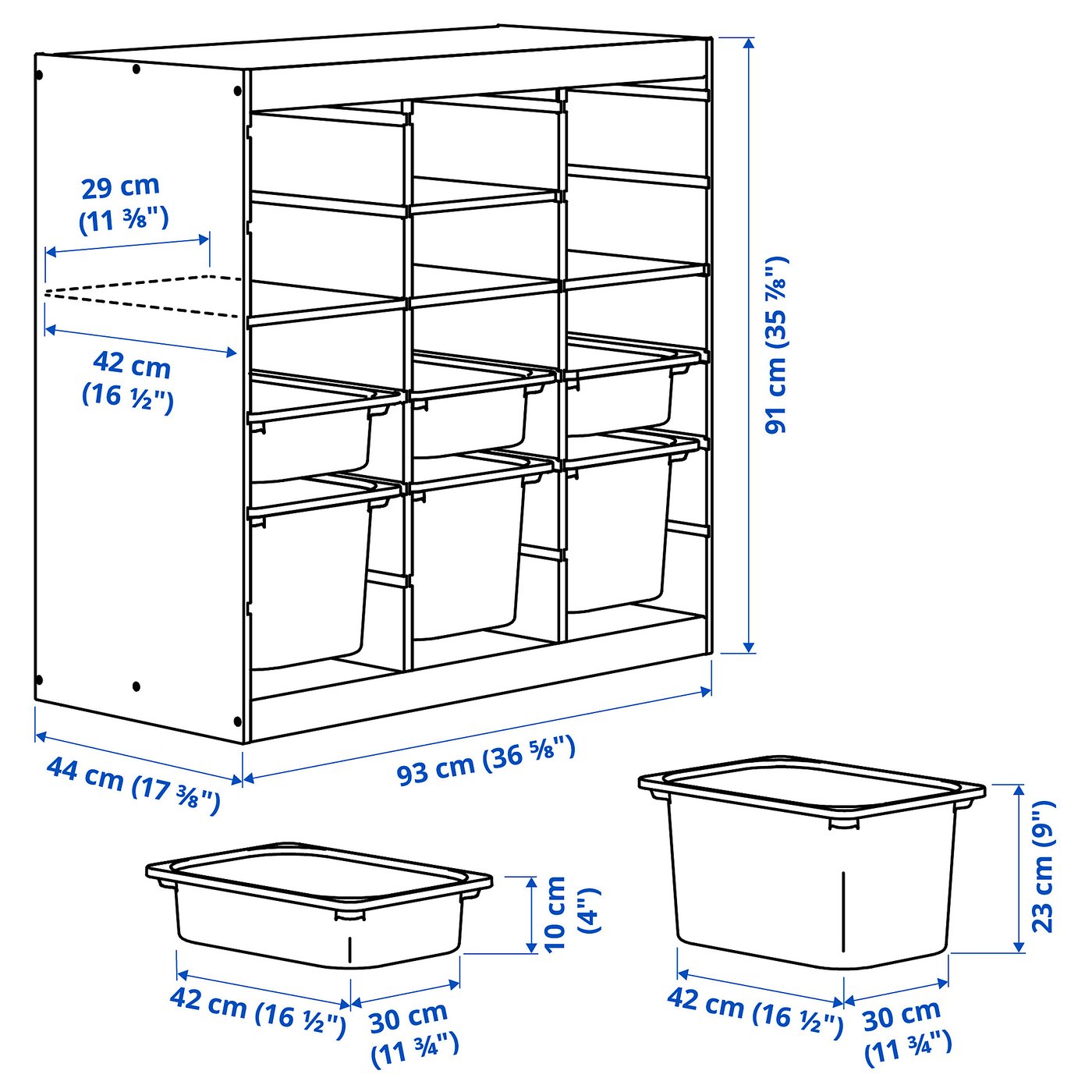 Якщо ви хочете захистити вміст від пилу та бруду, ви можете доповнити його кришкою TROFAST, яка продається окремо.