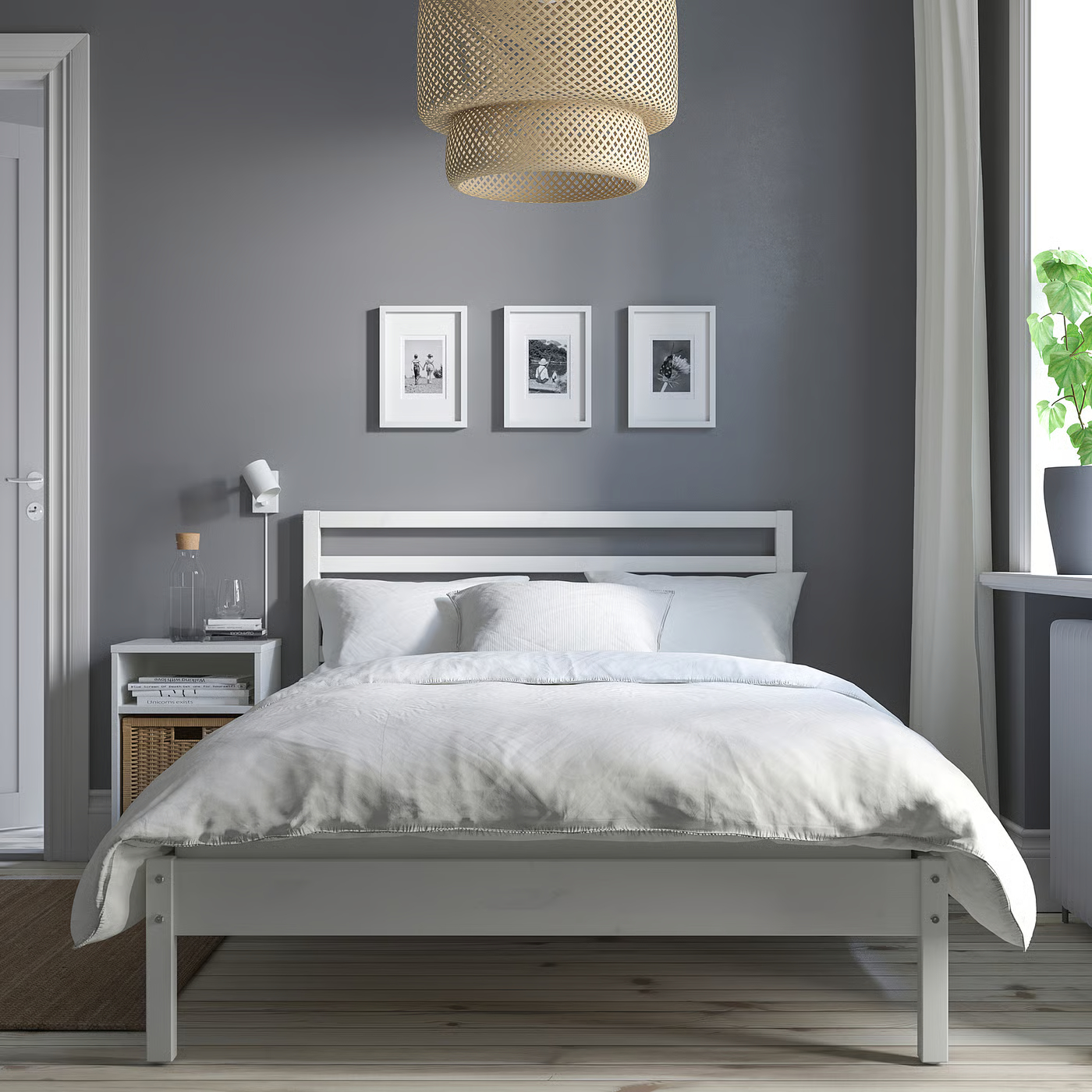 Рама ліжка має простий, позачасовий дизайн, який гармонійно поєднується з іншими меблями в кімнаті та пасує практично до будь-якої спальні.