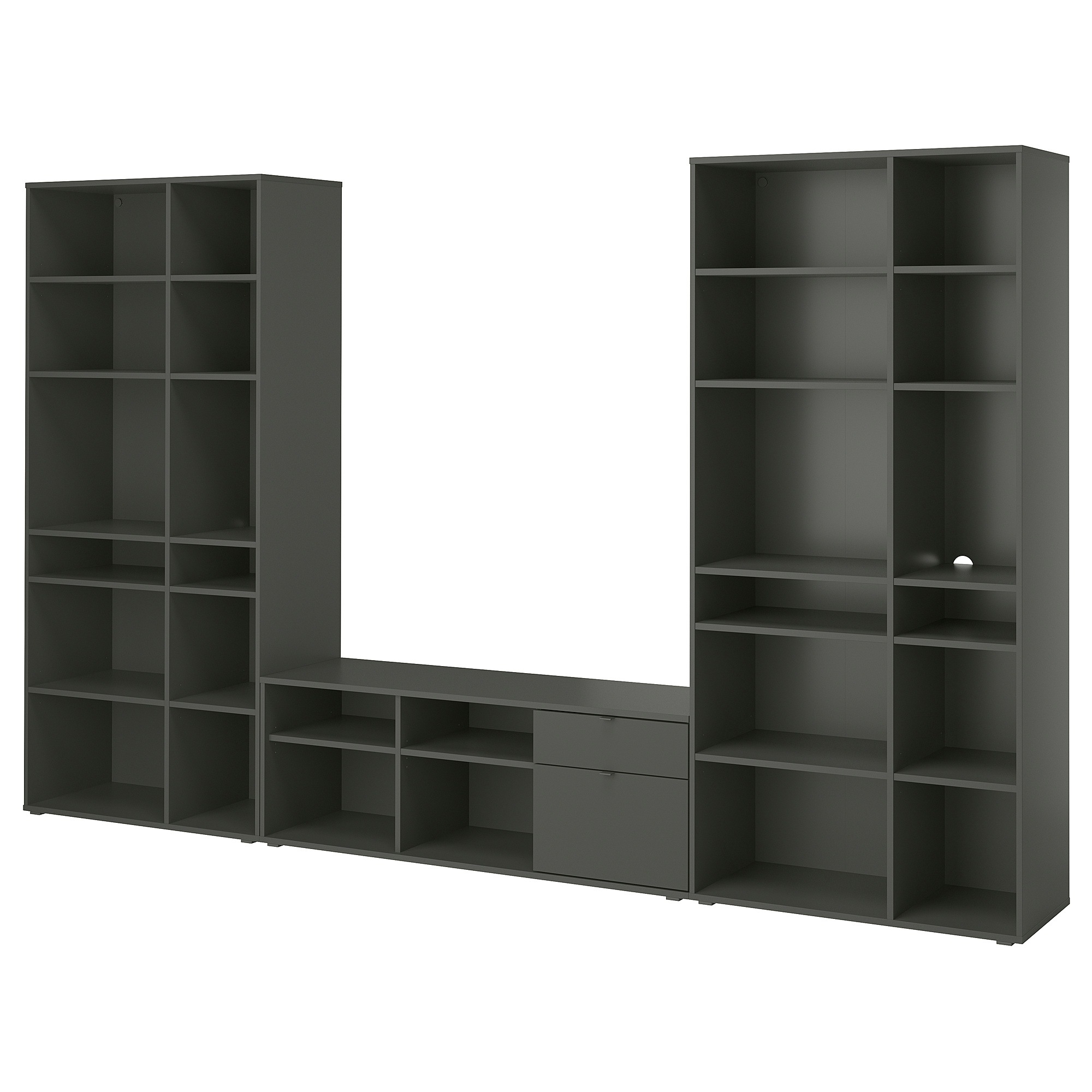 Серія для зберігання VIHALS має єдиний дизайн, який об'єднує приміщення у всьому будинку. Ця комбінація дозволяє приховати безлад з пультами та кабелями, щоб ви могли розслабитися та зосередитися на розвагах.