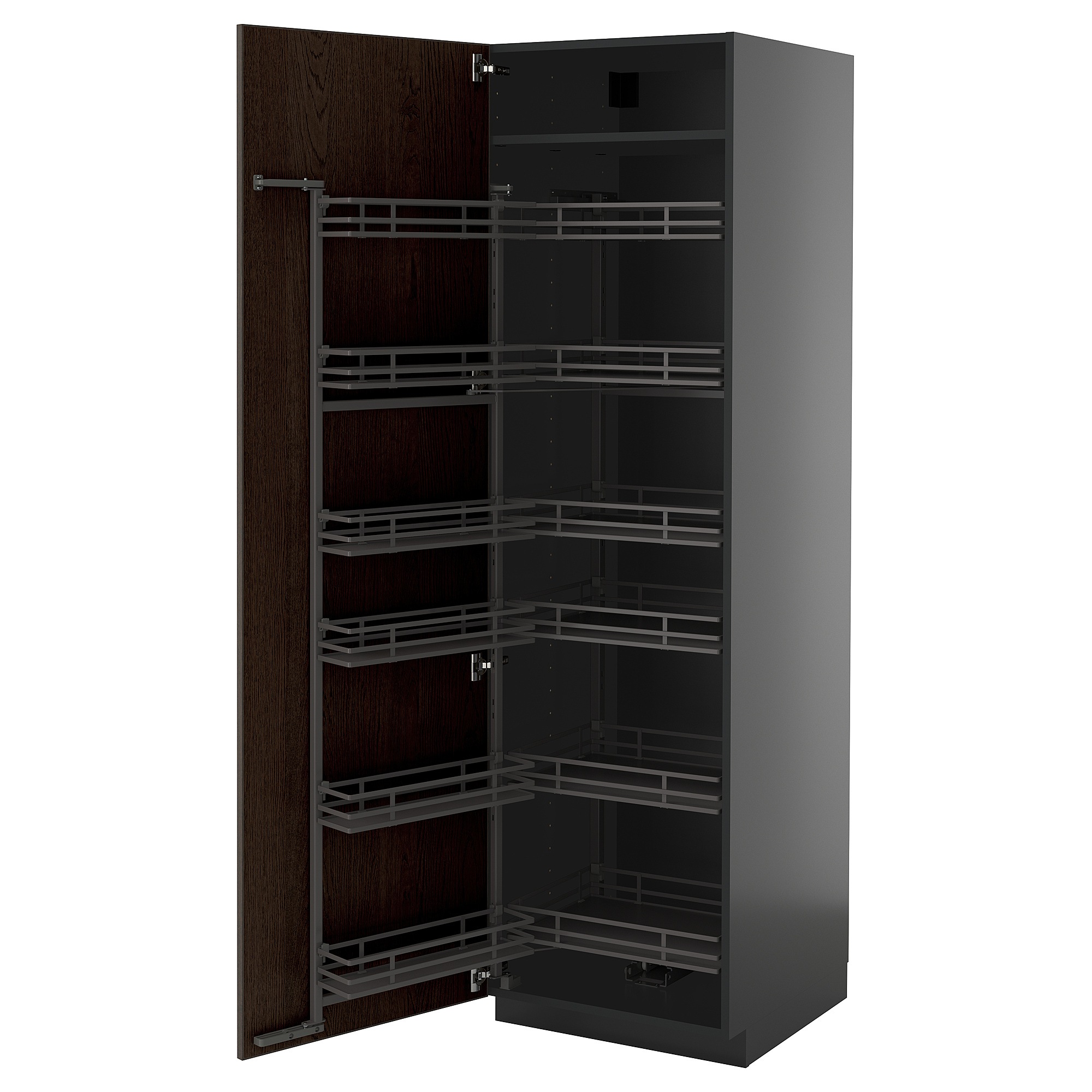 Система METOD надає необмежені можливості для проектування кухні вашої мрії. У поєднанні з темно-коричневими фасадами SINARP з краями з масиву дерева ви отримаєте кухню, сповнену характеру та дрібних деталей.