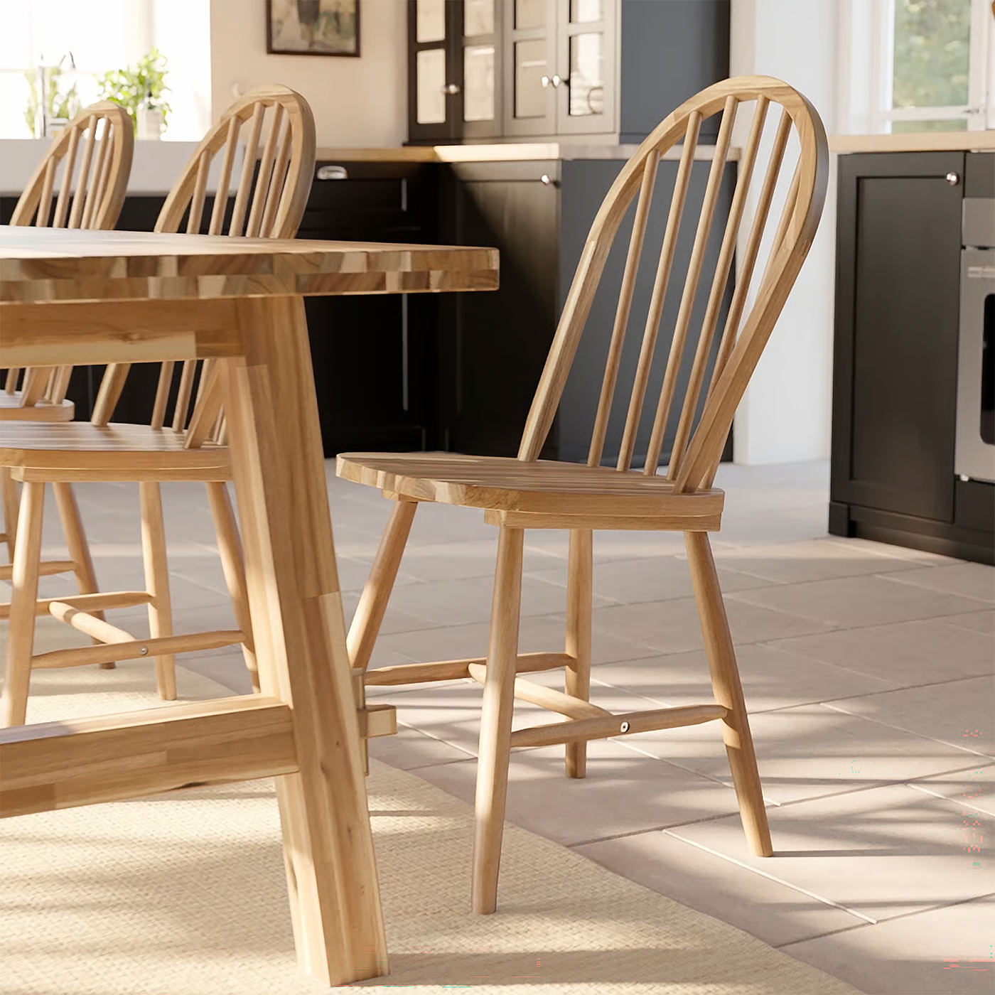 Рама ніжок/ Сидіння/ Задня спинка: масив акації, клей, безбарвний акриловий лак