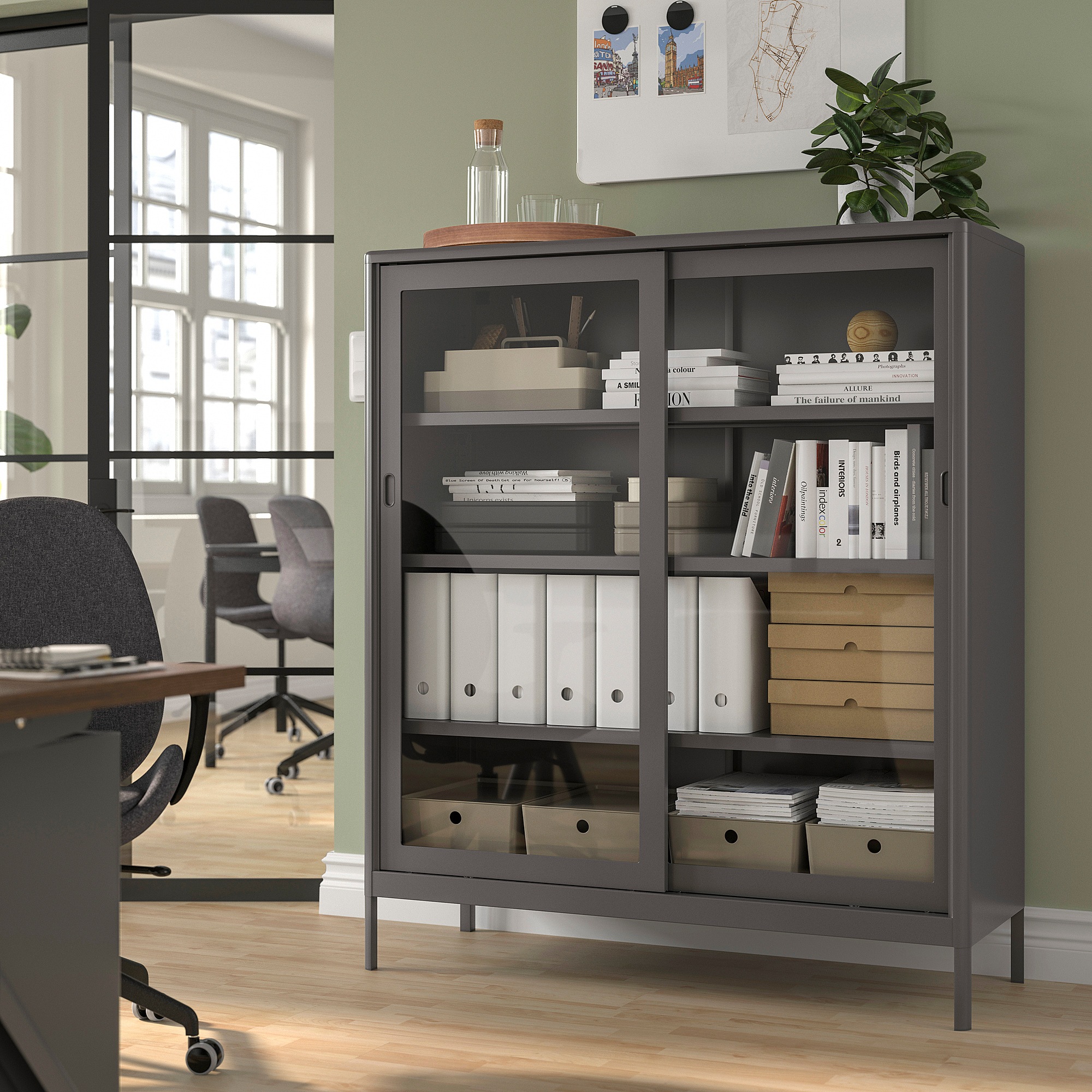 Виберіть цю міцну шафу зі скляними дверцятами, якщо ви любите мати навколо себе улюблені предмети, але не любите пилососити. Коли ви її відкриєте, оригінальні розсувні дверцята не займають цінного місця.