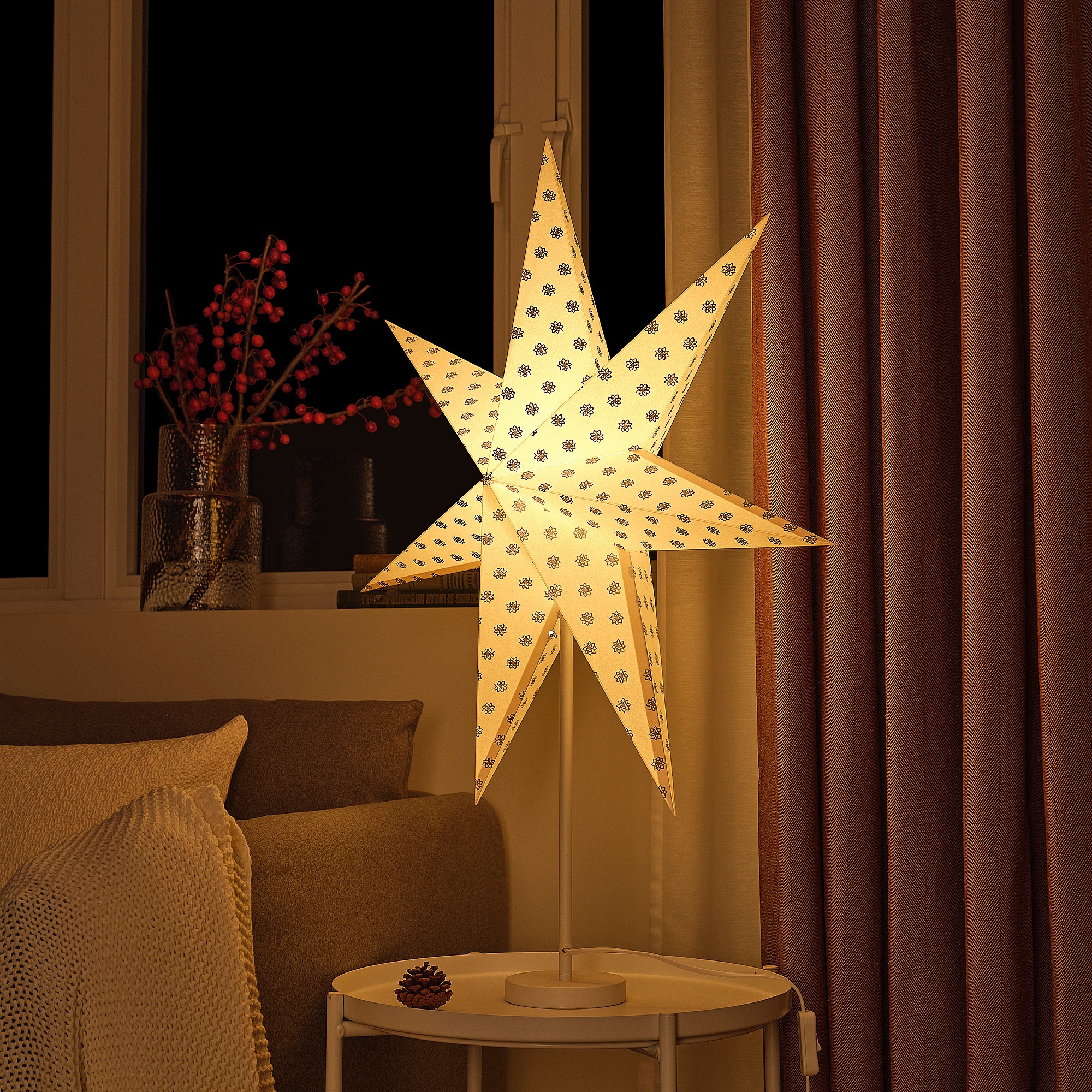 Цей традиційний скандинавський абажур з крихітними сріблястими квітами поширює приємне затишне сяйво. Поєднайте його зі світлодіодною лампочкою та тримачем для кабелю або цоколем - і нехай він сяє.