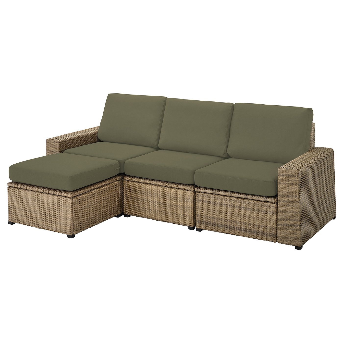 Створіть вітальню просто неба за допомогою модульних секцій SOLLERÖN. Зручний шезлонг, штучний ротанг, що не потребує догляду, і стійкі до вицвітання подушки створюють відчуття комфорту.