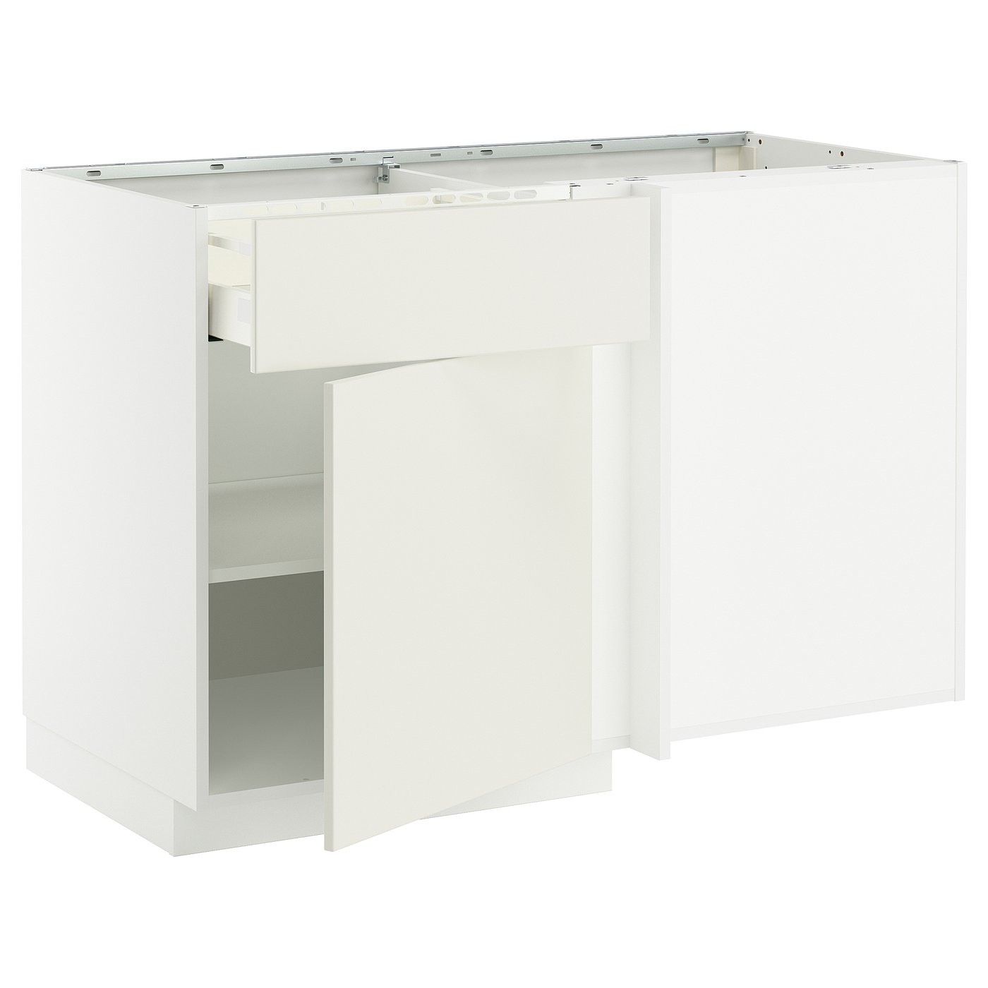 Використовуйте білий заповнювач, що входить до комплекту, якщо ви ставите комод під правильним кутом до кутової шафи. Заповнювач можна також прикрити шматком оздоблювальної панелі, щоб він повністю збігався з кухонними дверцятами.