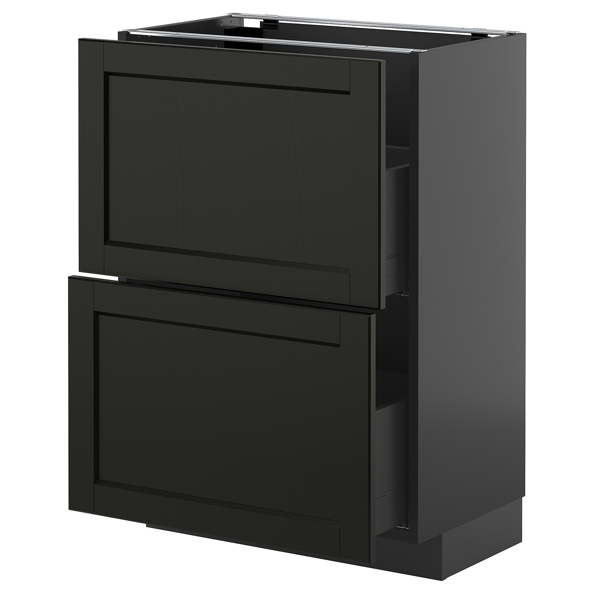 Система METOD надає необмежені можливості для проектування кухні вашої мрії. У поєднанні з чорними фасадами LERHYTTAN з фацетованими краями ваша кухня набуде теплого і традиційного характеру.