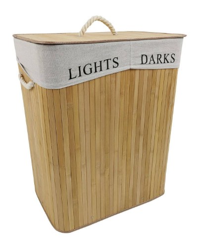 Завдяки двом відділенням він дозволяє легко сортувати речі, а бамбукова конструкція забезпечує міцність і стійкість, що робить його практичним рішенням на щодень.