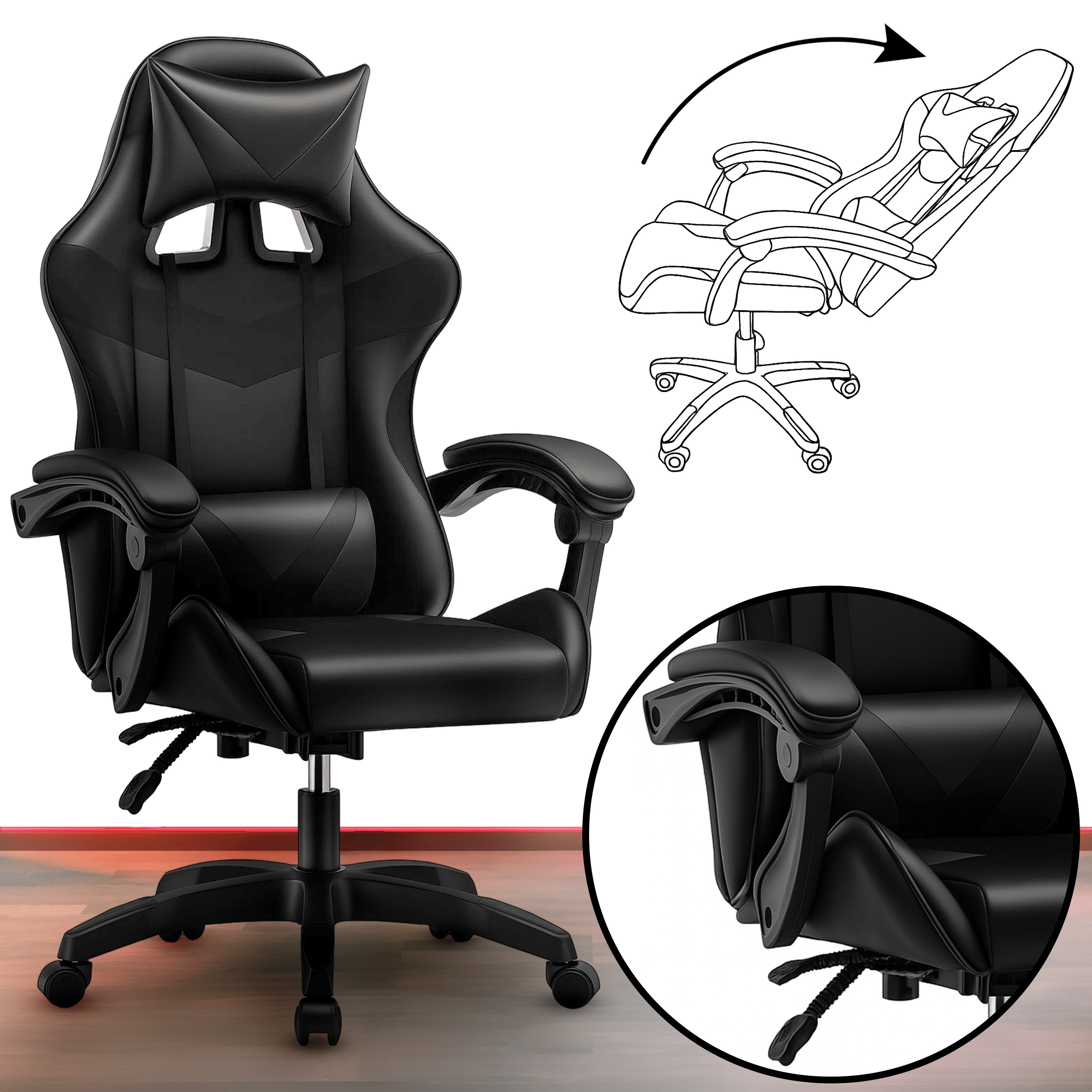 Ергономічне ігрове крісло, розроблене з урахуванням комфорту під час багатогодинної роботи або гри. Чашоподібна конструкція, подушки для підтримки хребта та регульовані елементи забезпечують належну підтримку та зручність у будь-якому положенні.