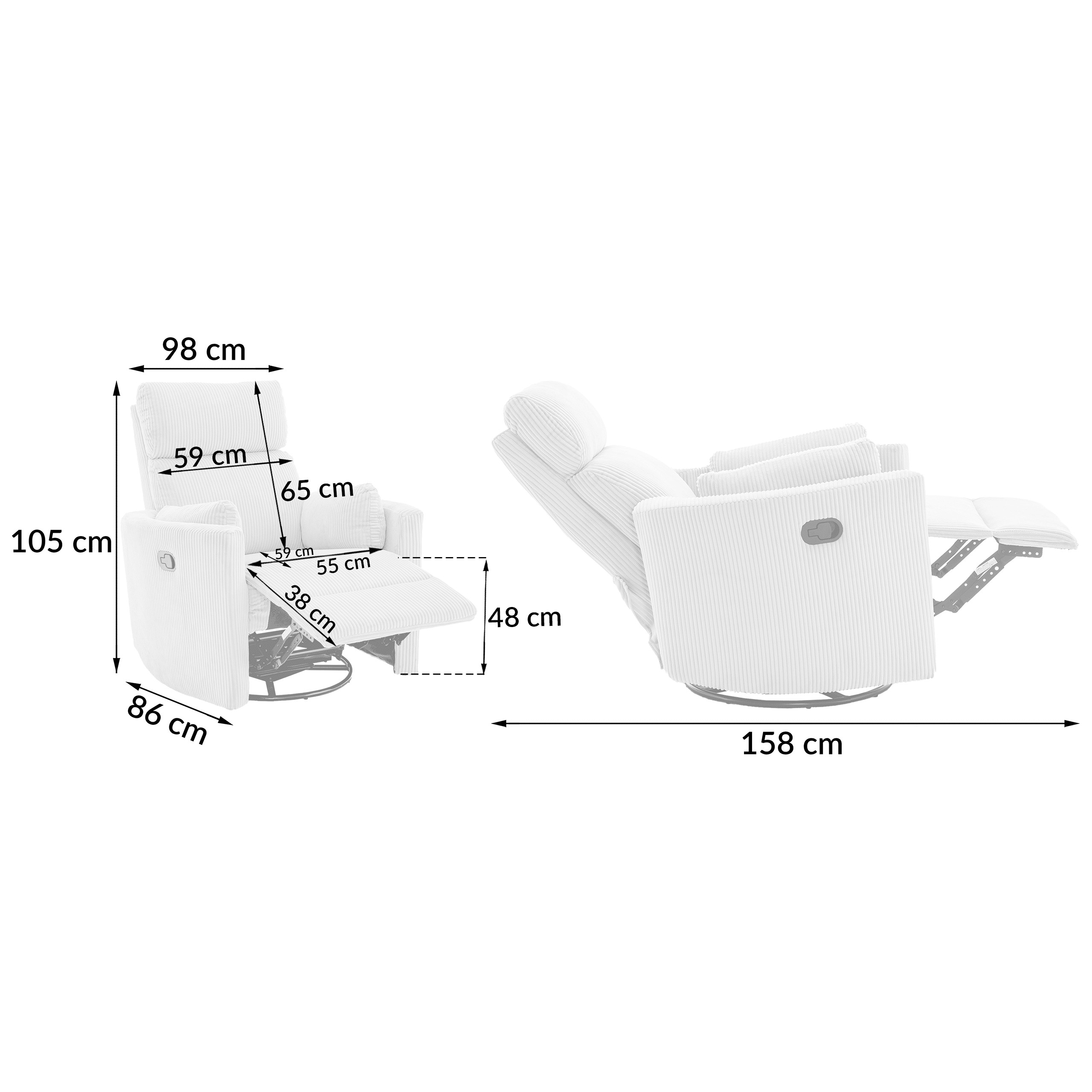 Крісло King — це поєднання комфорту, сучасного дизайну та функціональності. Профільована спинка, м'яка вельветова тканина та можливість розкладання створюють ідеальне місце для щоденного відпочинку. Поворотна конструкція полегшує використання крісла в різних приміщеннях будинку.