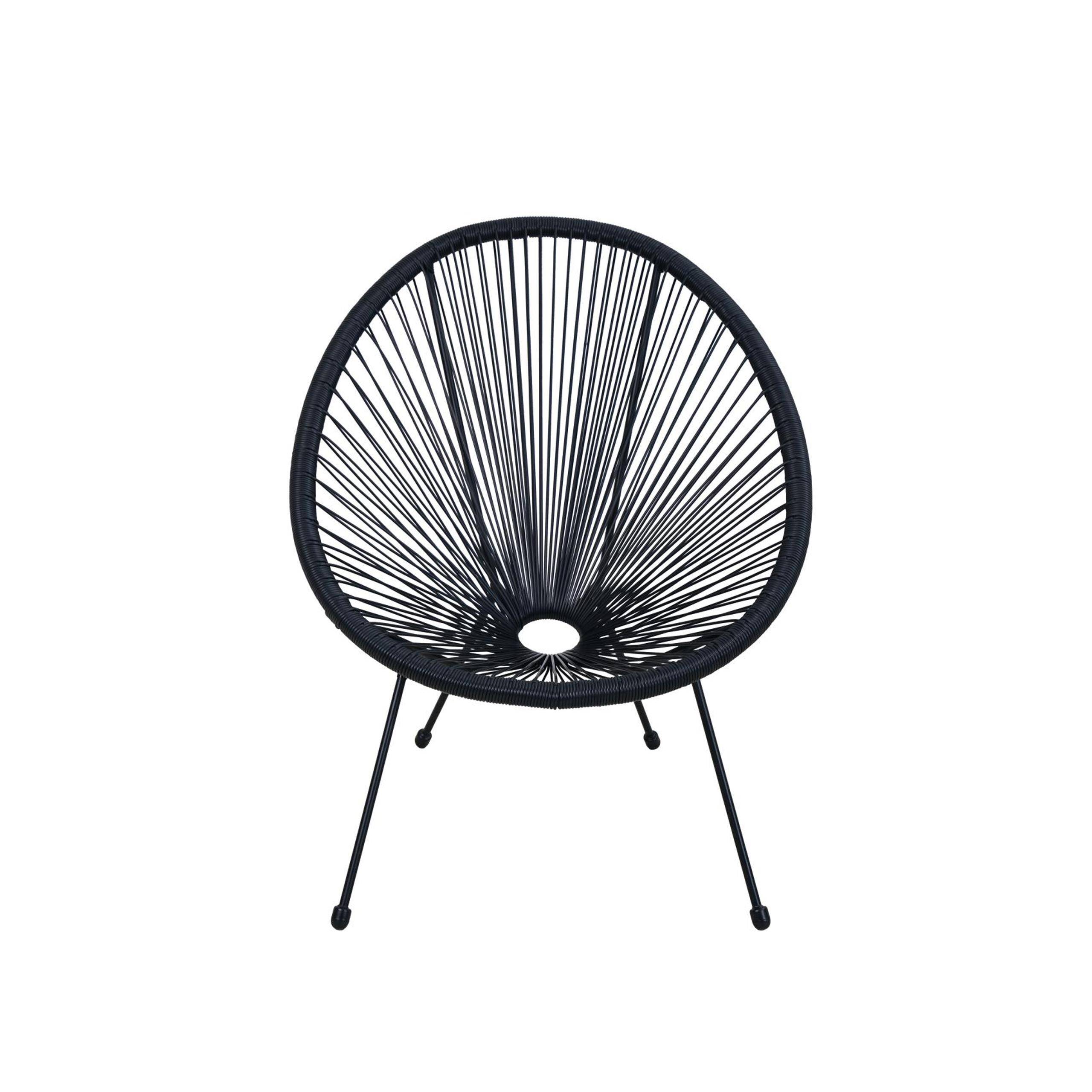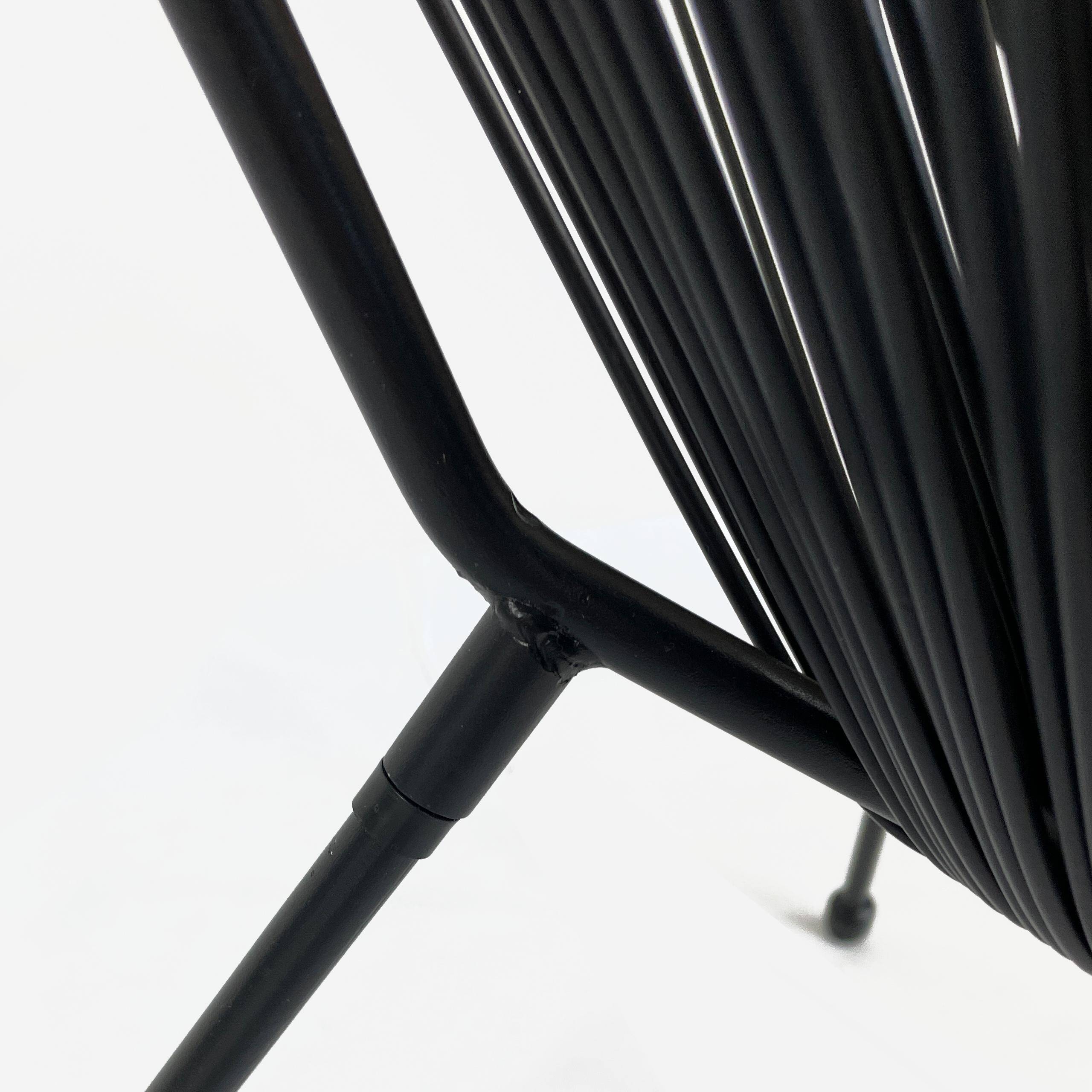 Сидіння виготовлено з міцних, еластичних пластикових тросів, які ідеально пристосовуються до форми тіла, забезпечуючи комфорт навіть під час тривалого використання. Використані матеріали роблять крісло Acapulco легким, але водночас міцним і стійким до пошкоджень. Чорне оздоблення додає елегантності та дозволяє стільцю вписатися в різноманітні інтер'єри – від сучасних до стилів бохо чи скандинавського.