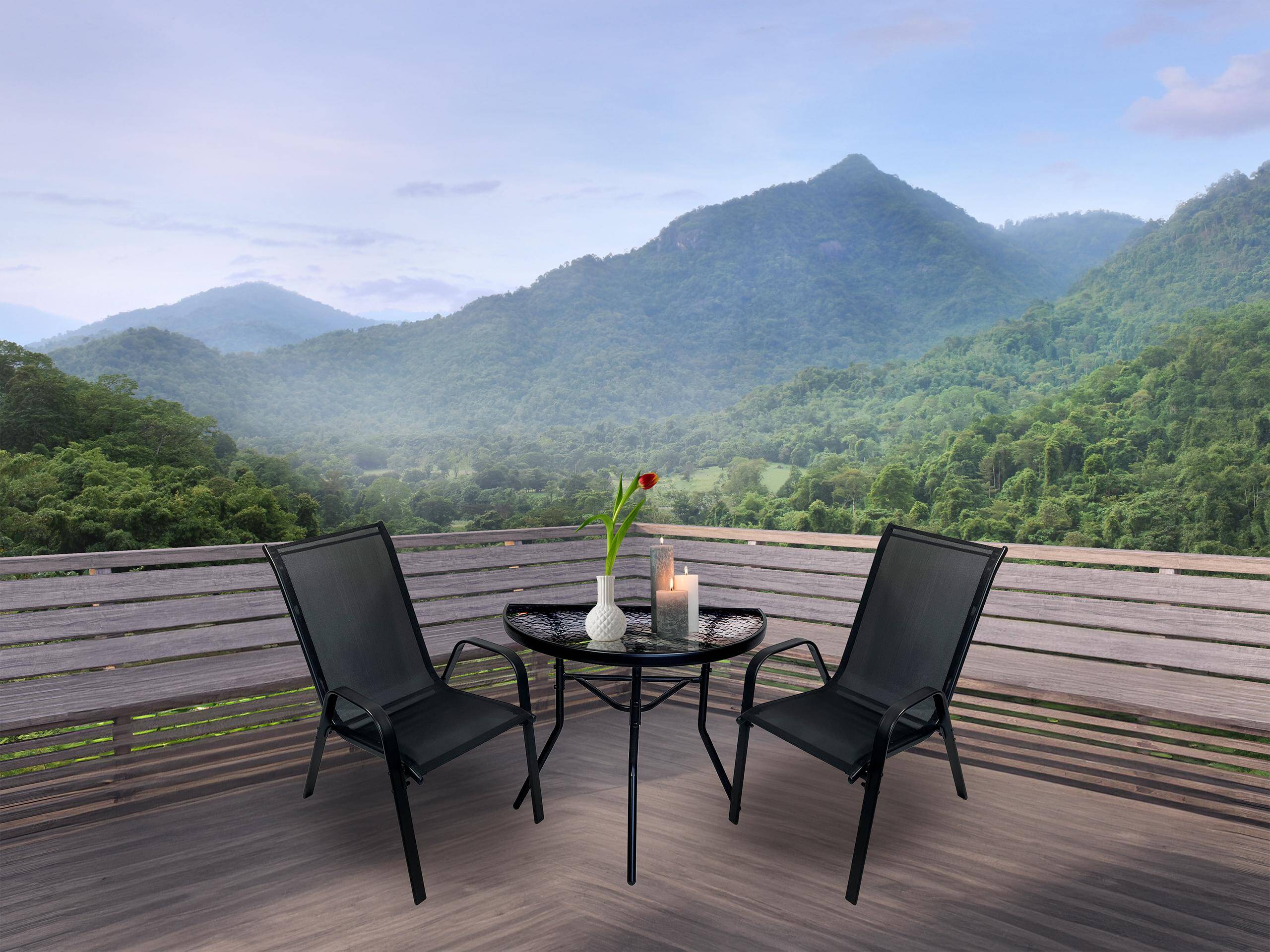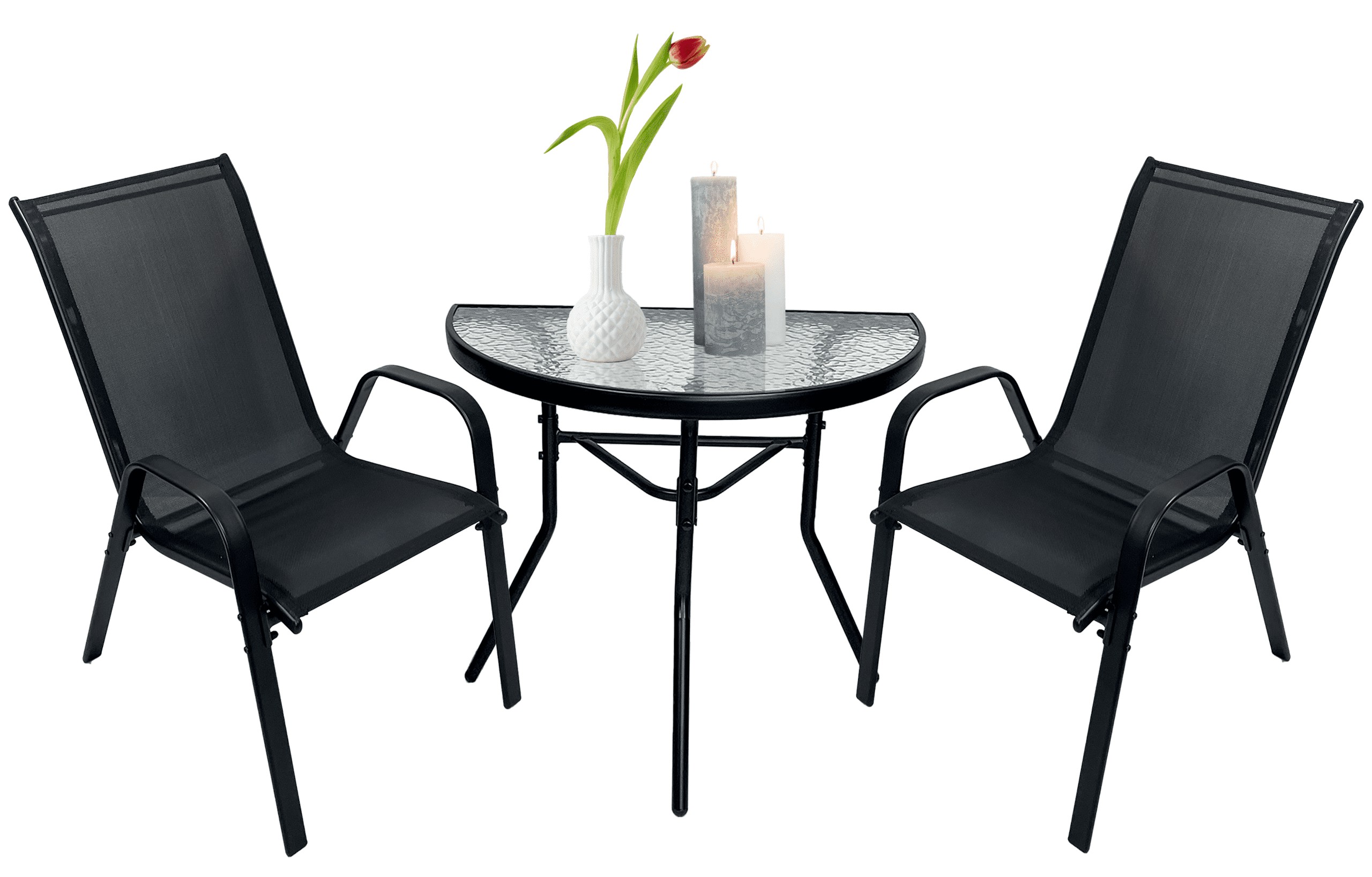 Компактний, функціональний комплект, ідеальний для балкона, тераси, альтанки або невеликого саду. Комплект забезпечує зручне місце для прийому їжі або відпочинку на свіжому повітрі.