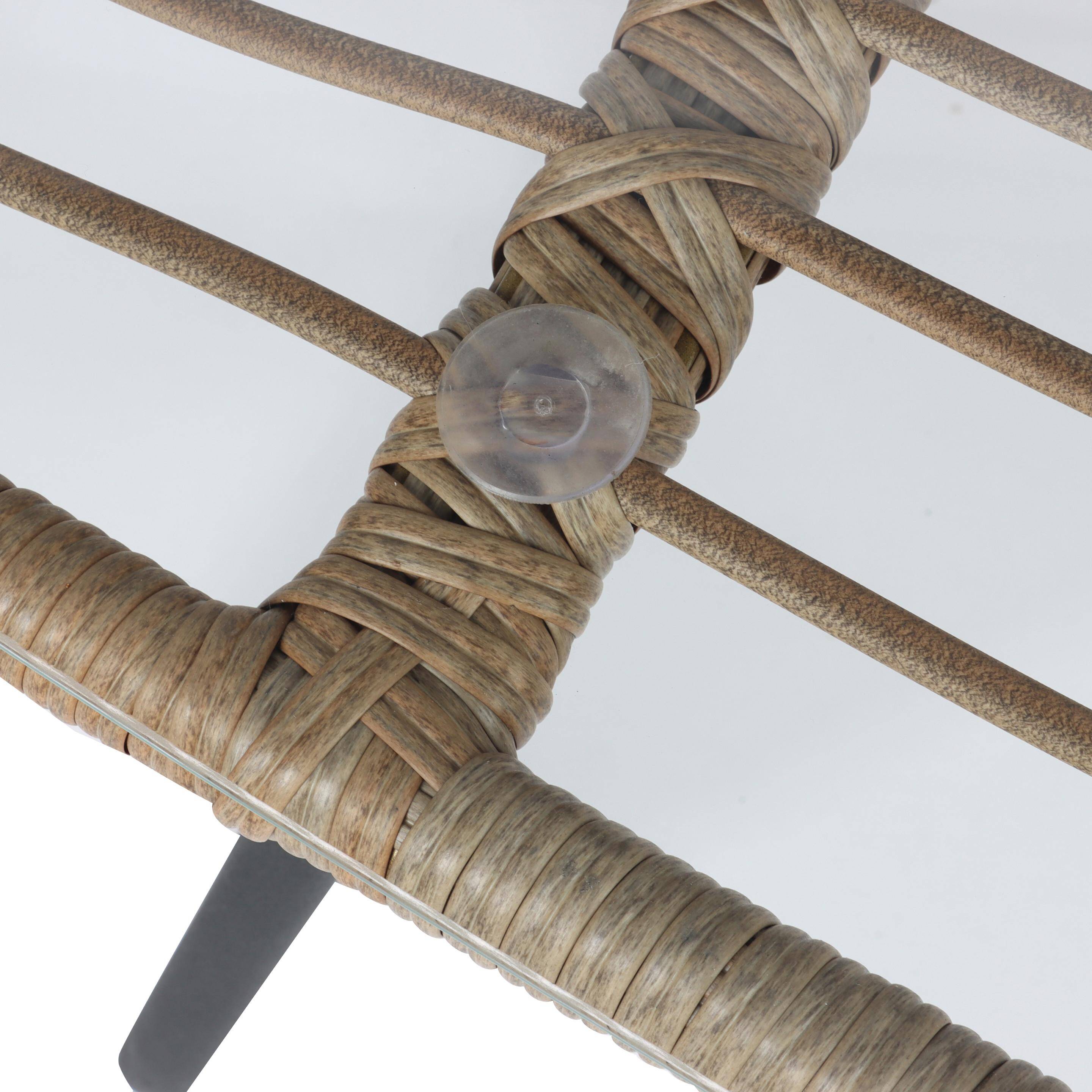 Комплект садових меблів BILBAO NATURALNY – це набір із сучасним дизайном та природною стилістикою. Виготовлений із техноратану, що імітує натуральний ротанг, він ідеально підійде для тераси, саду або патіо. Продукт другого сорту – може мати незначні дефекти, описані нижче.