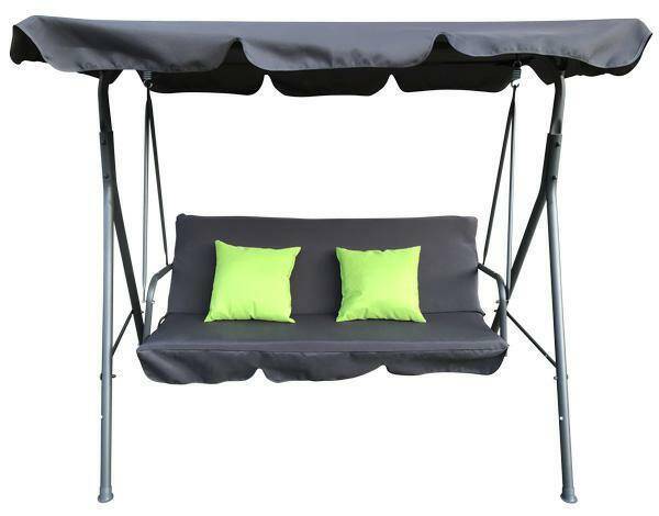 Розміри: 170x109x153 смМатеріал: сталь, поліуретанова піна, поліестер 160 г/м²Максимальне допустиме навантаження: 200 кгШироке 3-місне сидінняУ комплекті дві подушки 40x40 смМіцний сталевий каркасІдеально підходить для відпочинку в саду