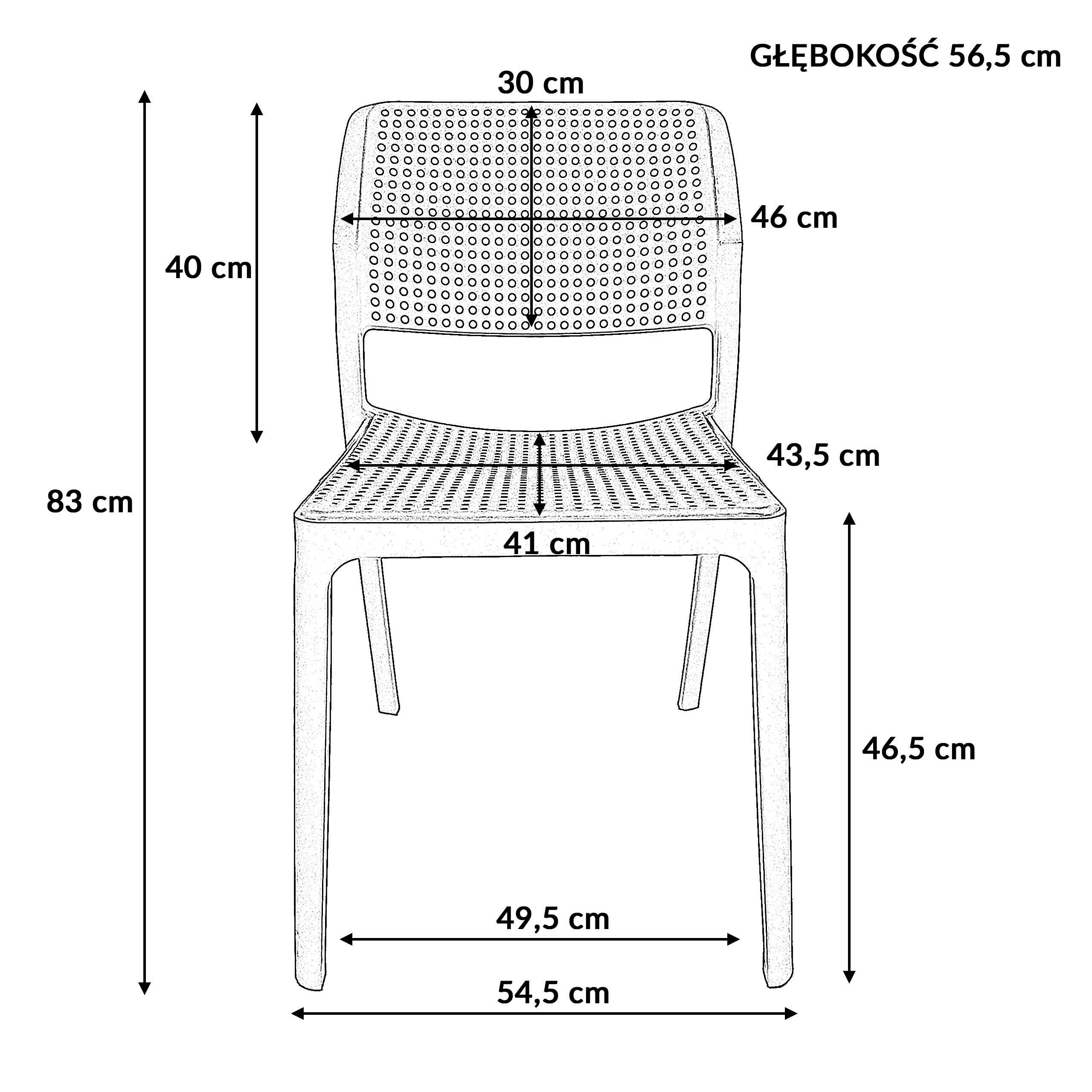 Характеристики стільця: Ширина: 54,5 см Глибина: 56,5 см Догляд: не вимагає обслуговування, легко чиститься Максимальне навантаження: 120 кг