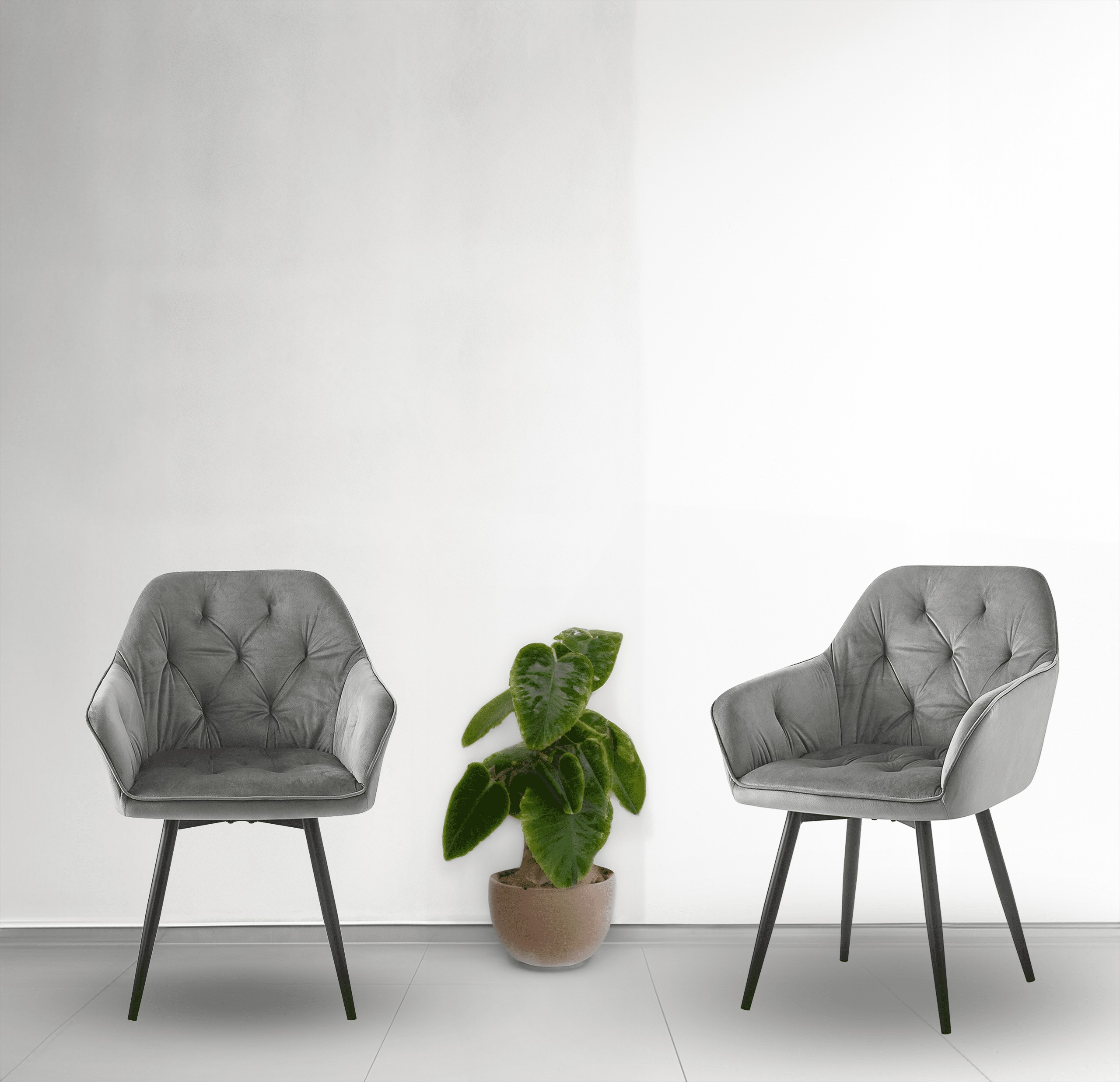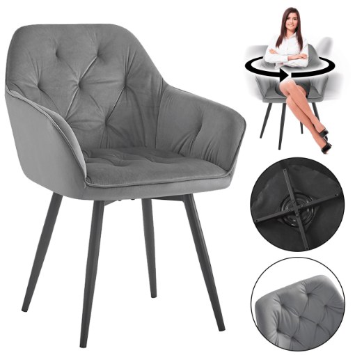 Елегантне крісло Julia в сірому відтінку – це стильний і практичний вибір для їдальні, вітальні або офісу. М'яка тканина велюр з легким блиском надає інтер'єру елегантності, а функція обертання на 360° забезпечує зручність використання. Поєднання сучасної форми та класичного кольору робить крісло ідеальним доповненням до різних інтер'єрів.