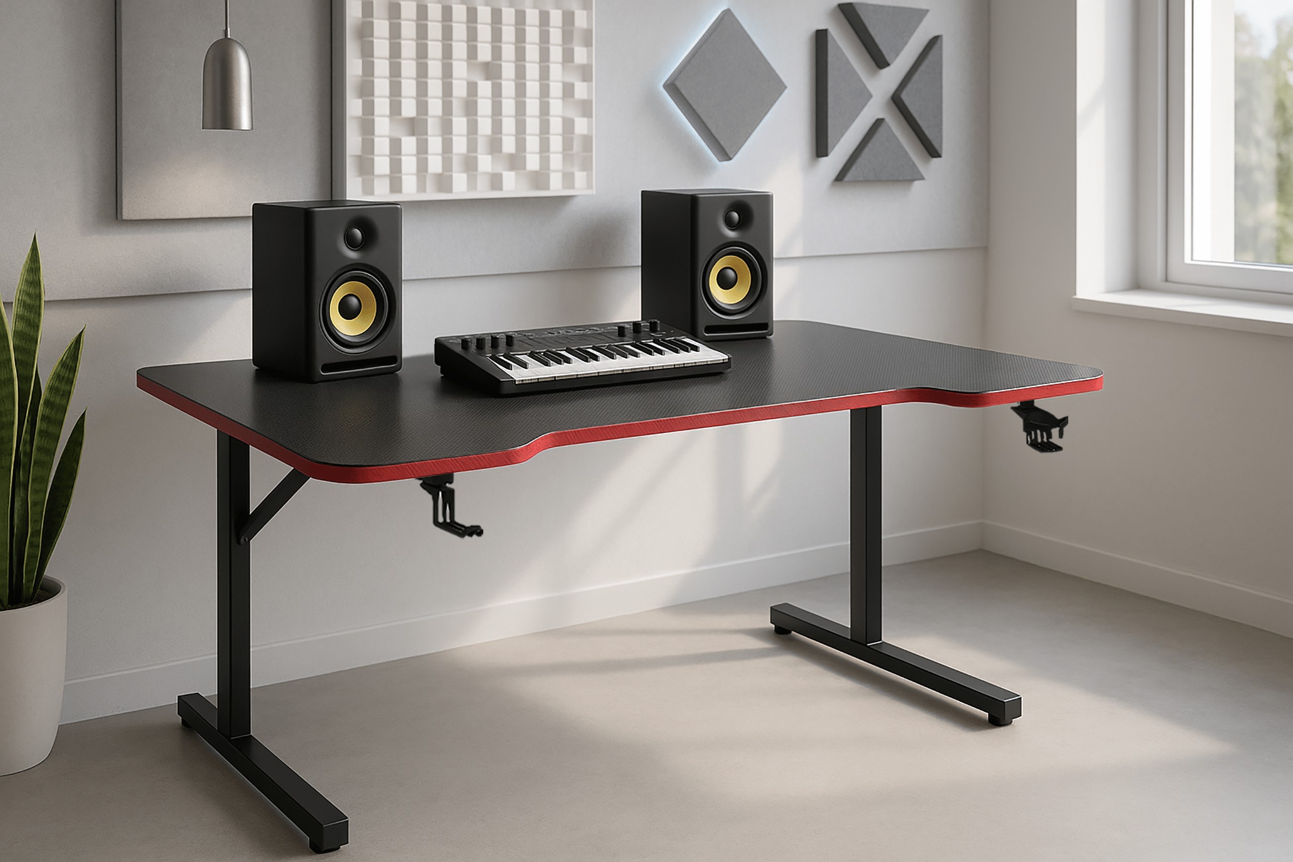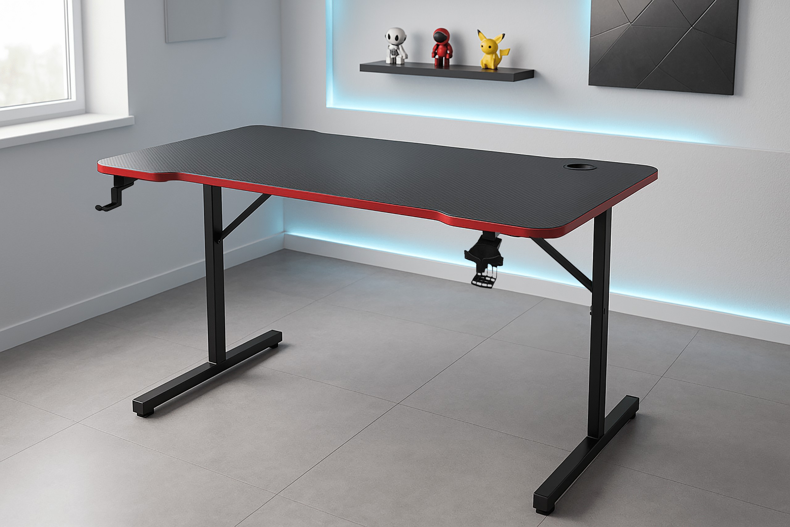 Ігровий стіл BG100 — це поєднання сучасного стилю та функціональності, ідеальне для геймерів, учнів та людей, які працюють за комп'ютером. Компактні розміри 120 x 70 x 75 см забезпечують зручний простір для ігор, навчання та роботи, а яскраві червоні акценти надають йому динамічного ігрового характеру.